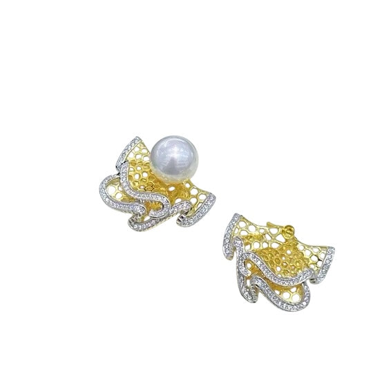 -Beautiful white pearl tops with gold net with zirconia