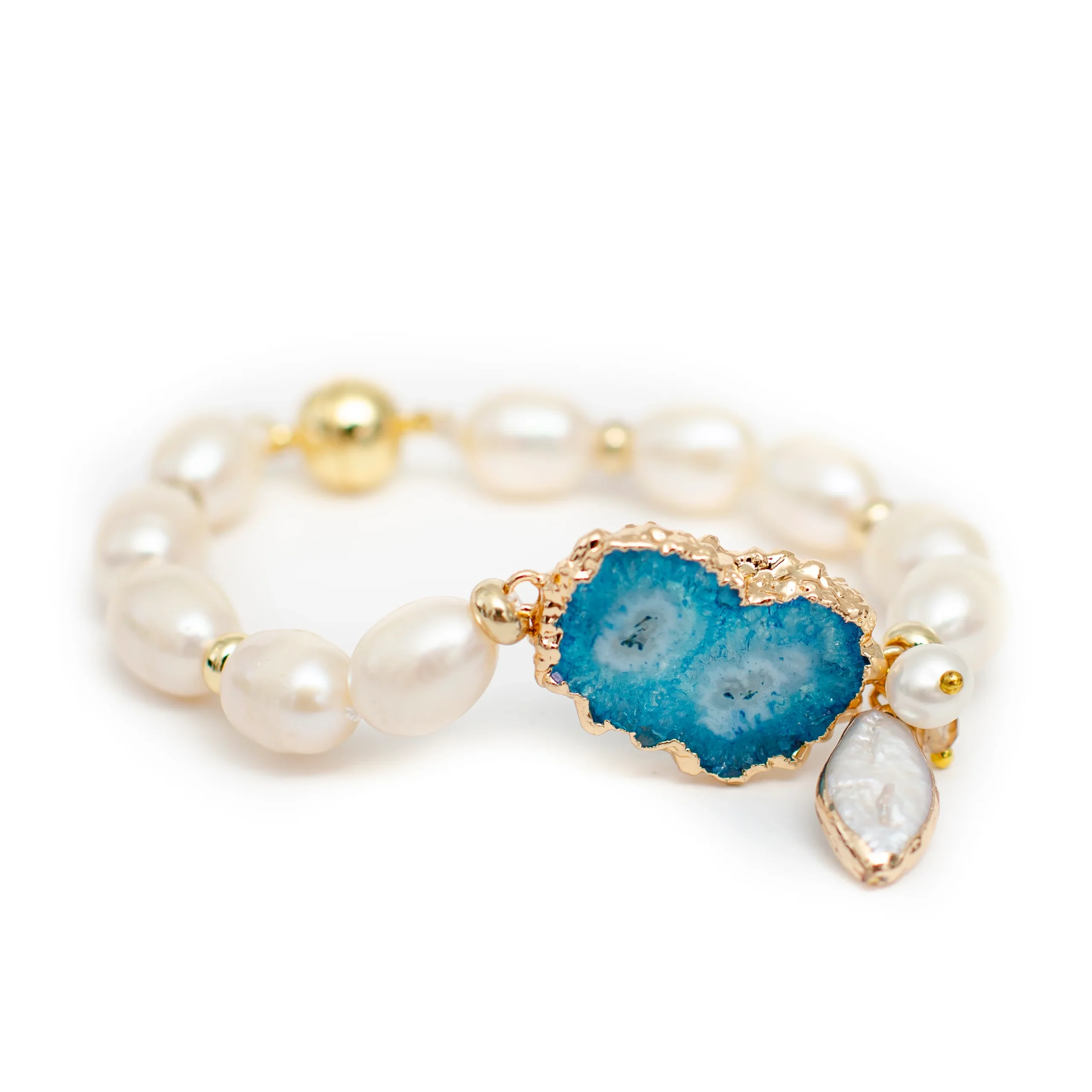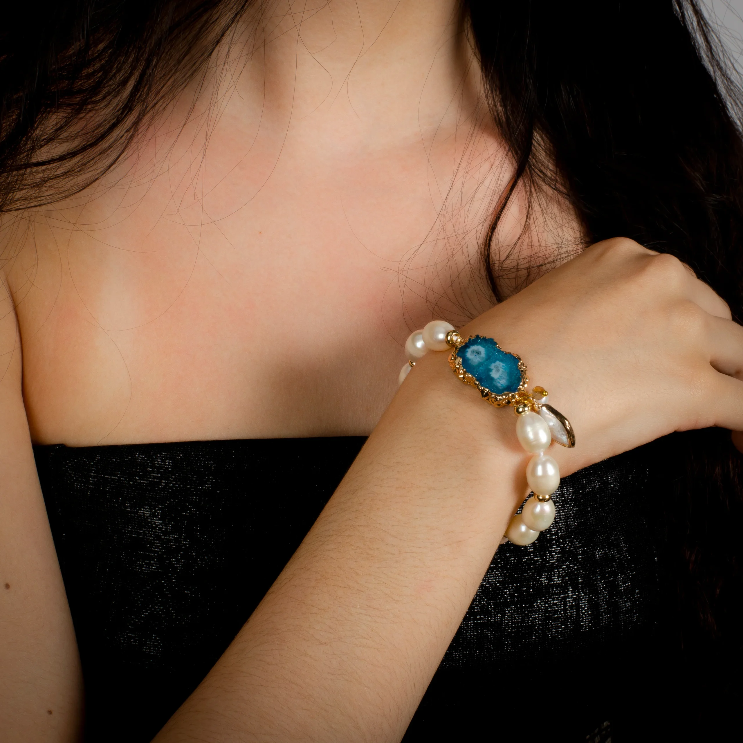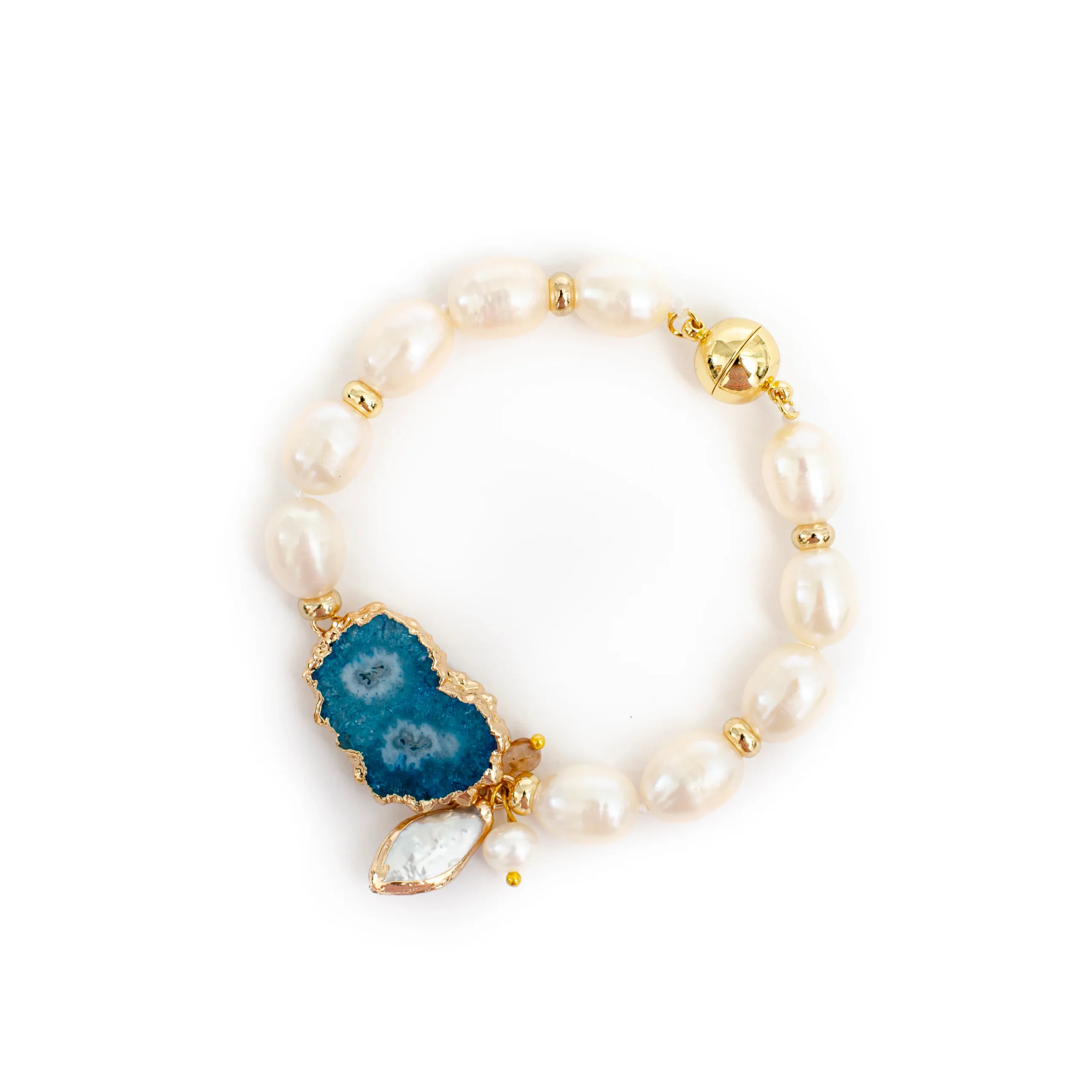 BraceletsBLUE AGATE WITH PEARL BRACELET