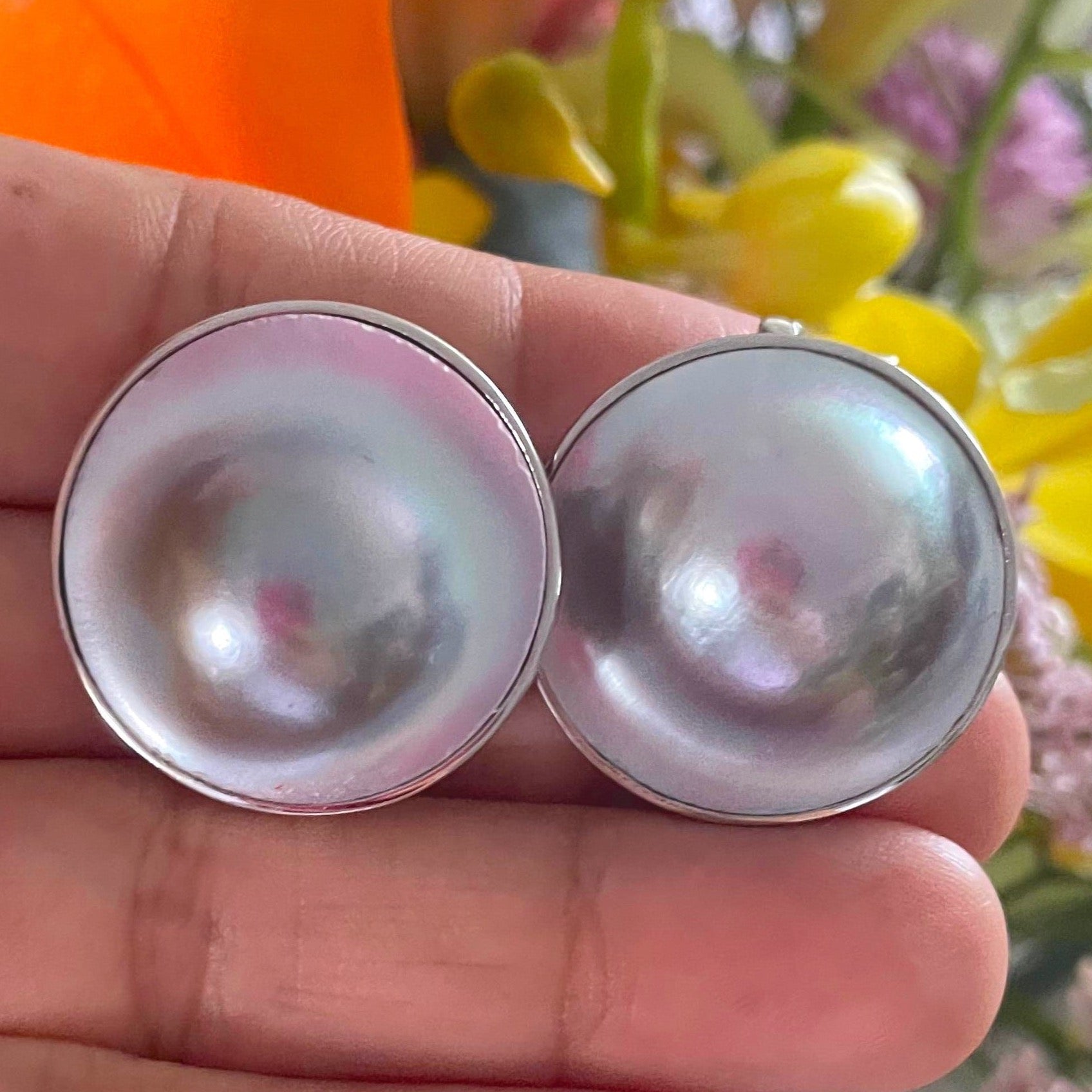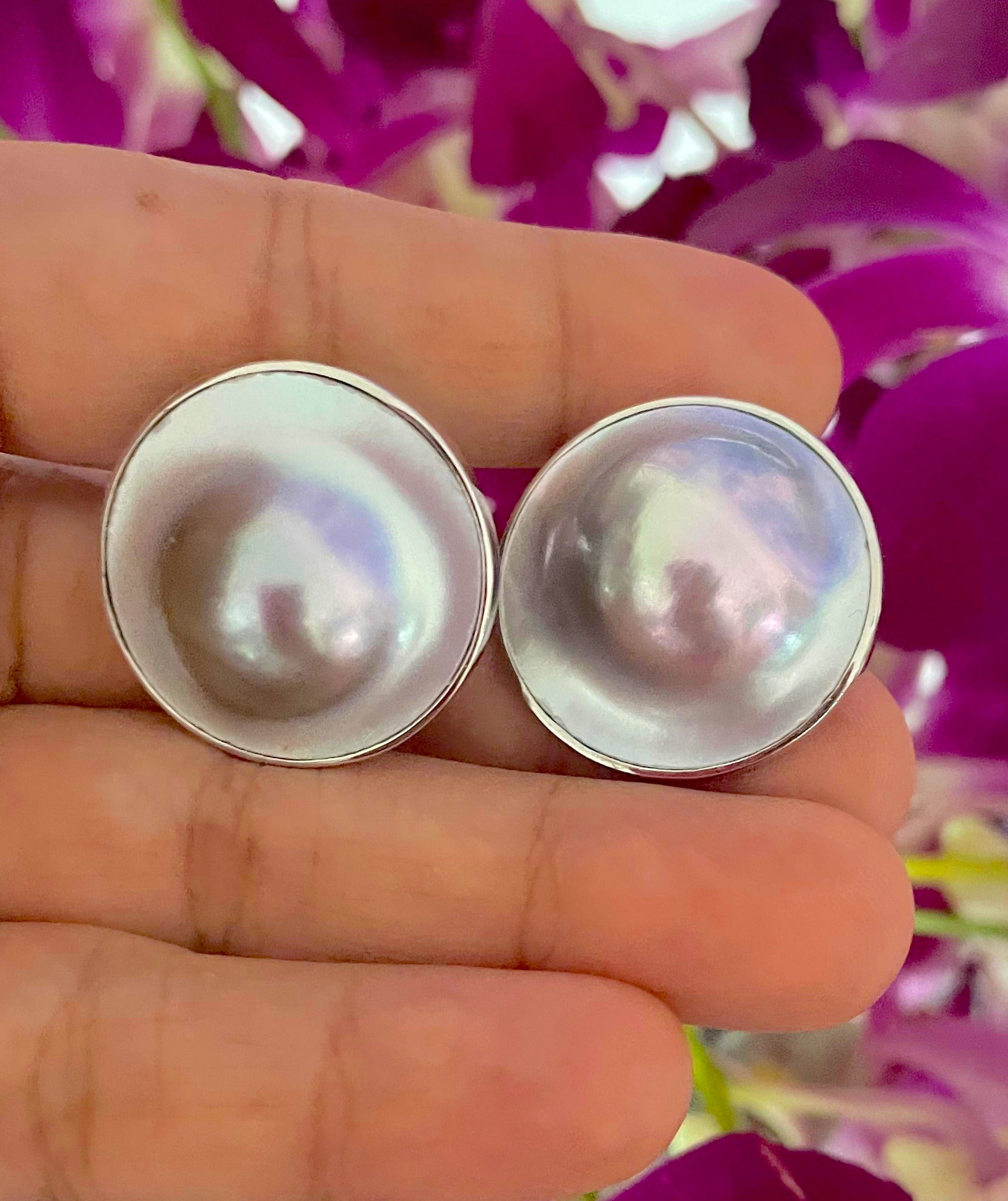 -Classic blue/grey Mabe pearl tops