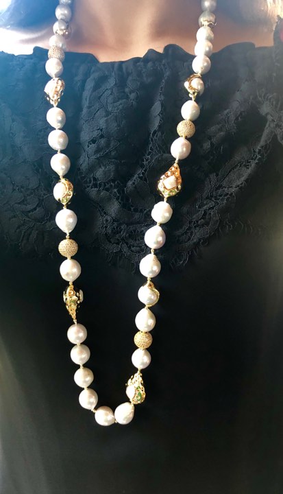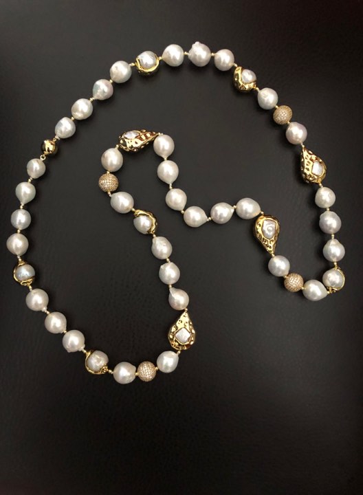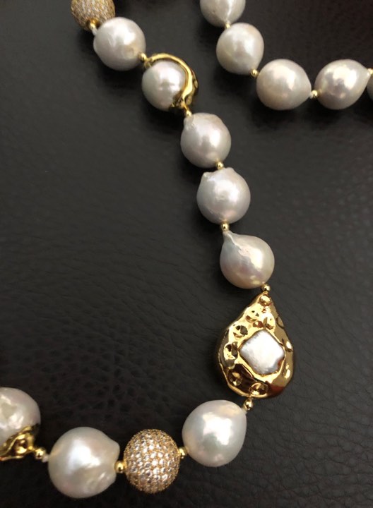 – Lustrous fine quality white baroque pearl necklaceÂ