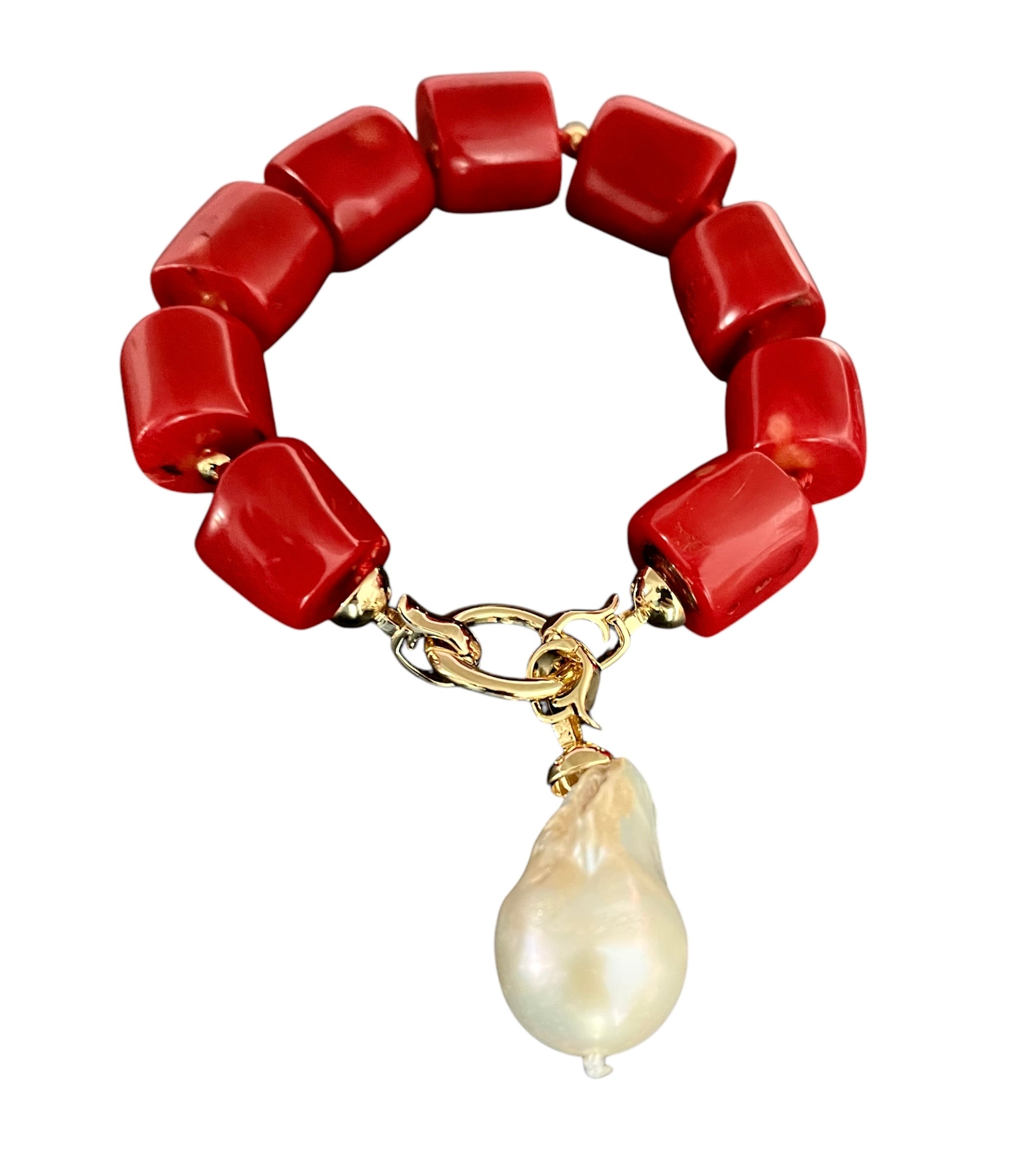CORAL BRACELET WITH BAROQUE DROPAvailability: 2 in stock