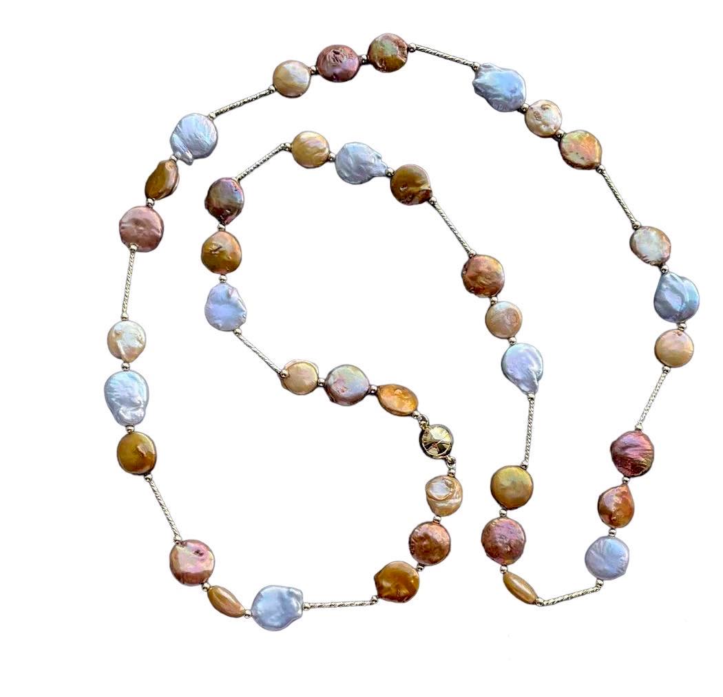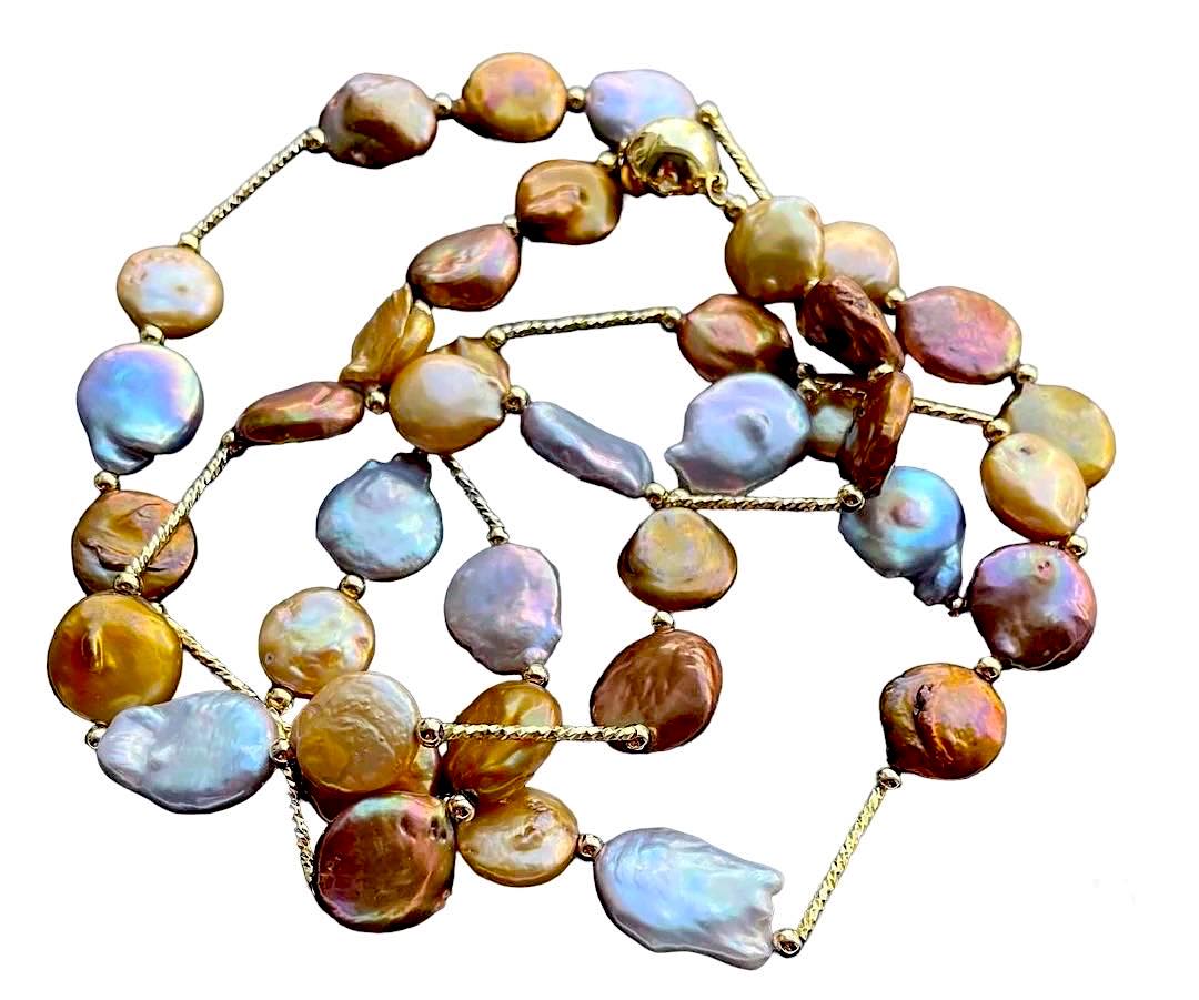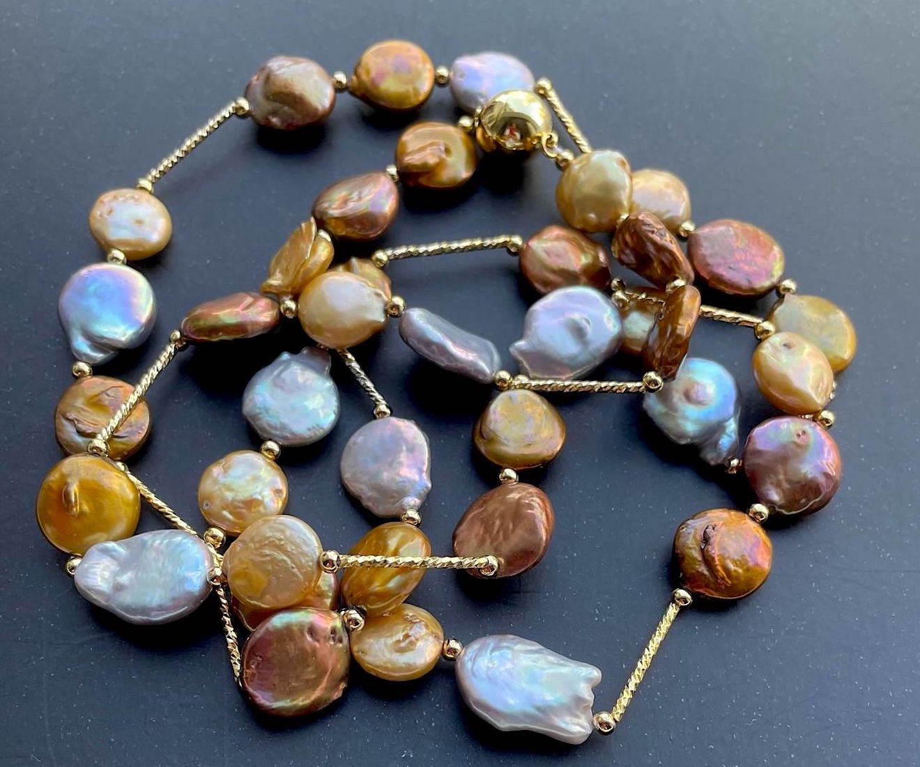 -Each pearl is knotted with with 18K gold plated wire and it has a comfortable magnetic gold clasp.You can wear it long or double it as well
