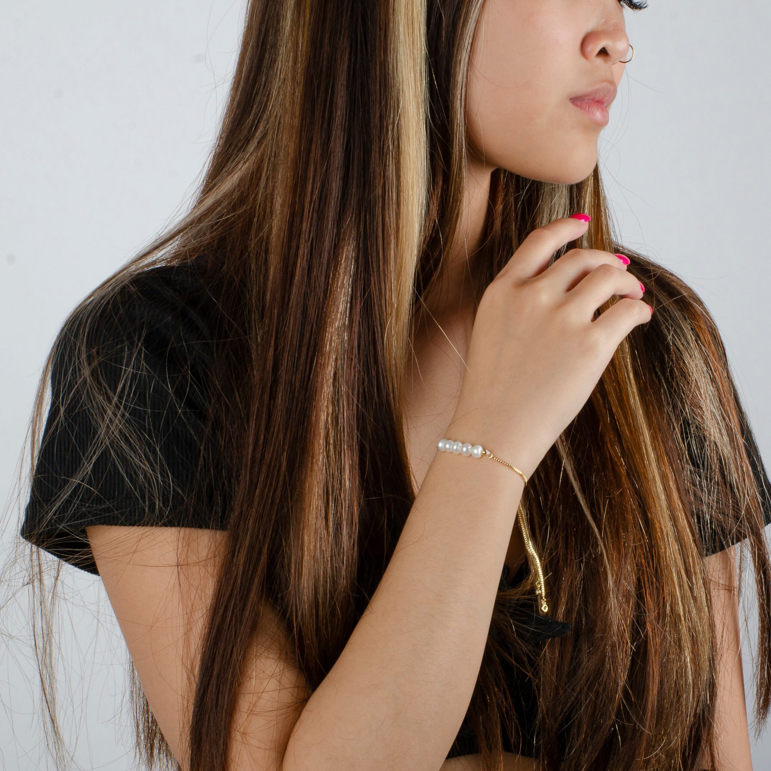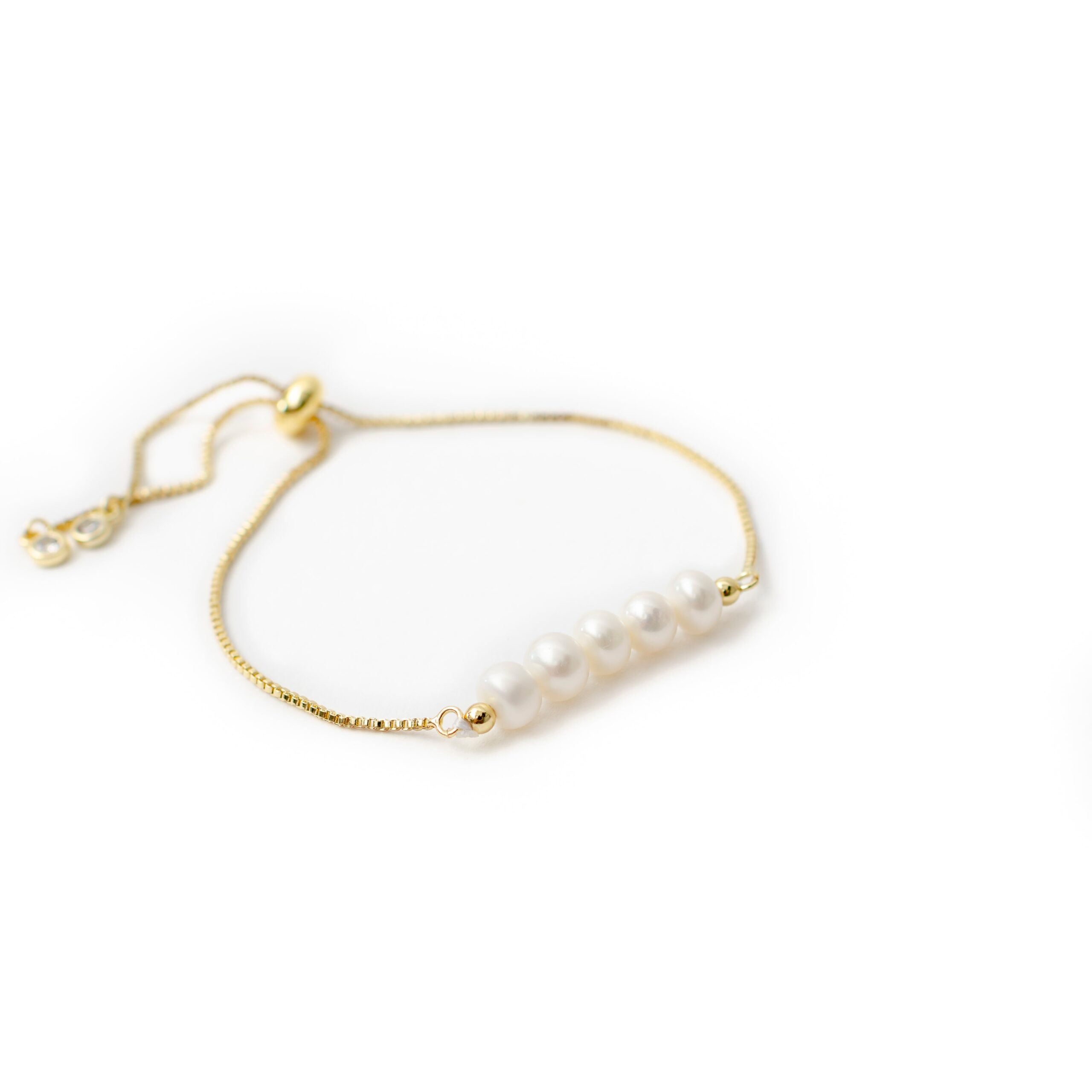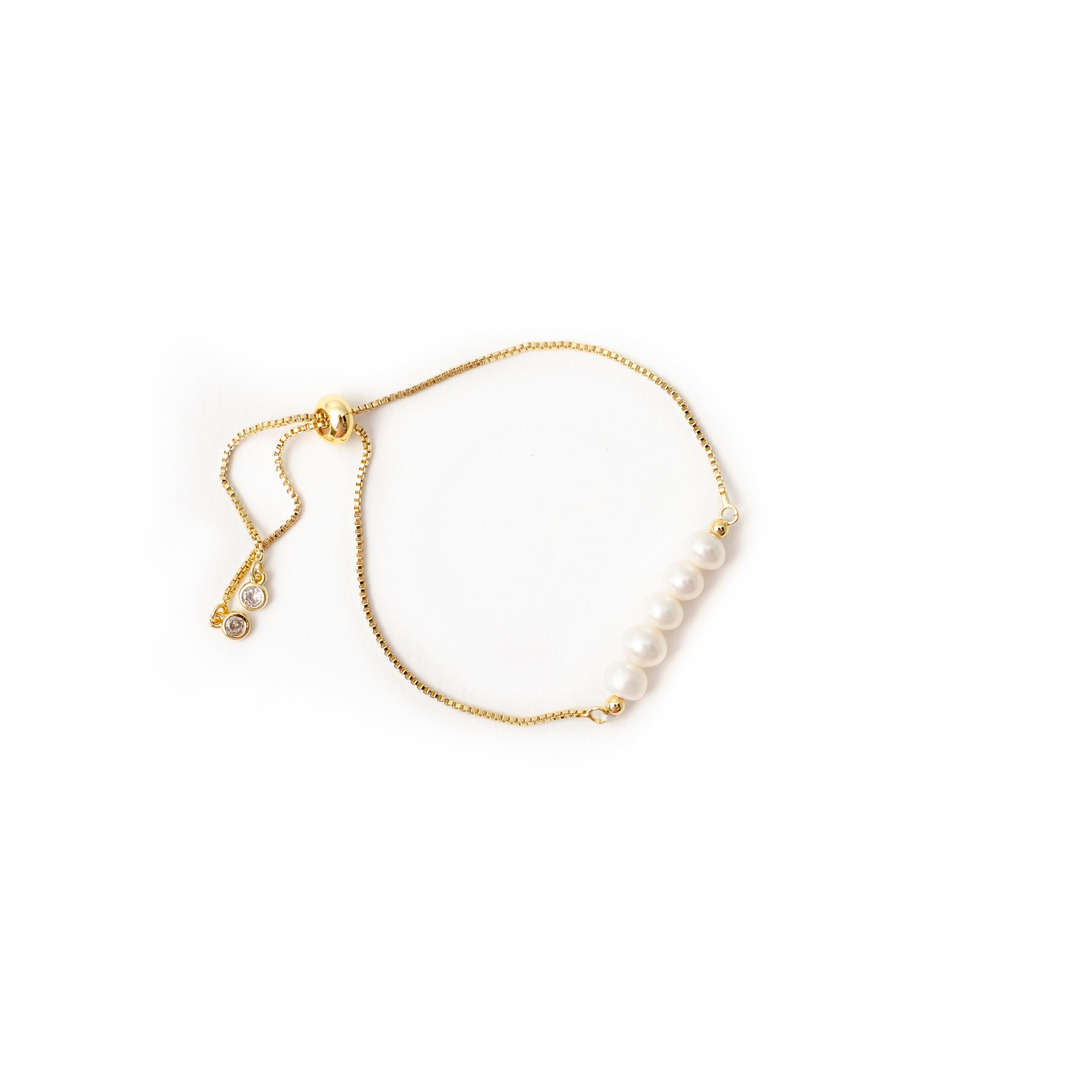 -Beautiful white fresh water pearl bracelet with 18K gold plated chain