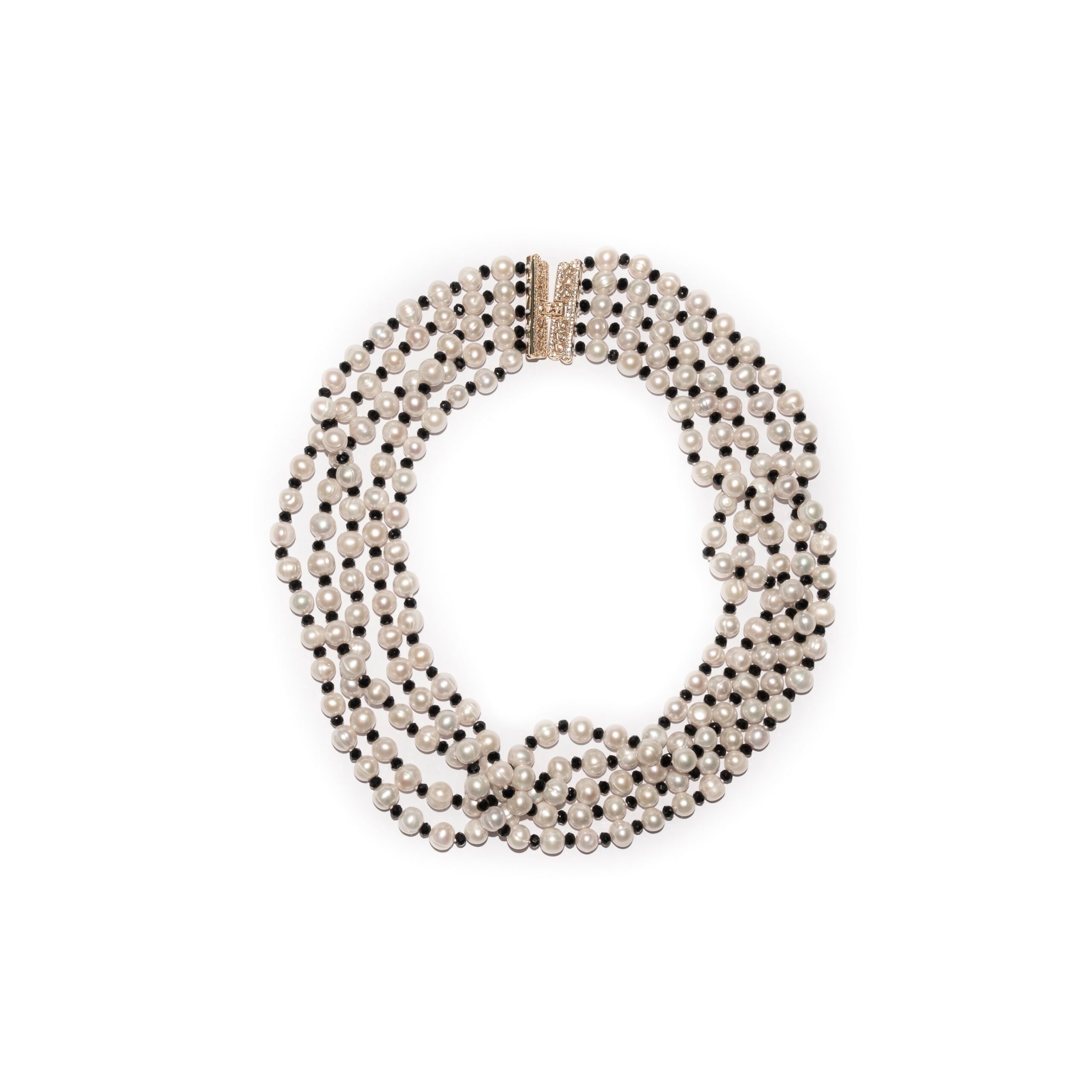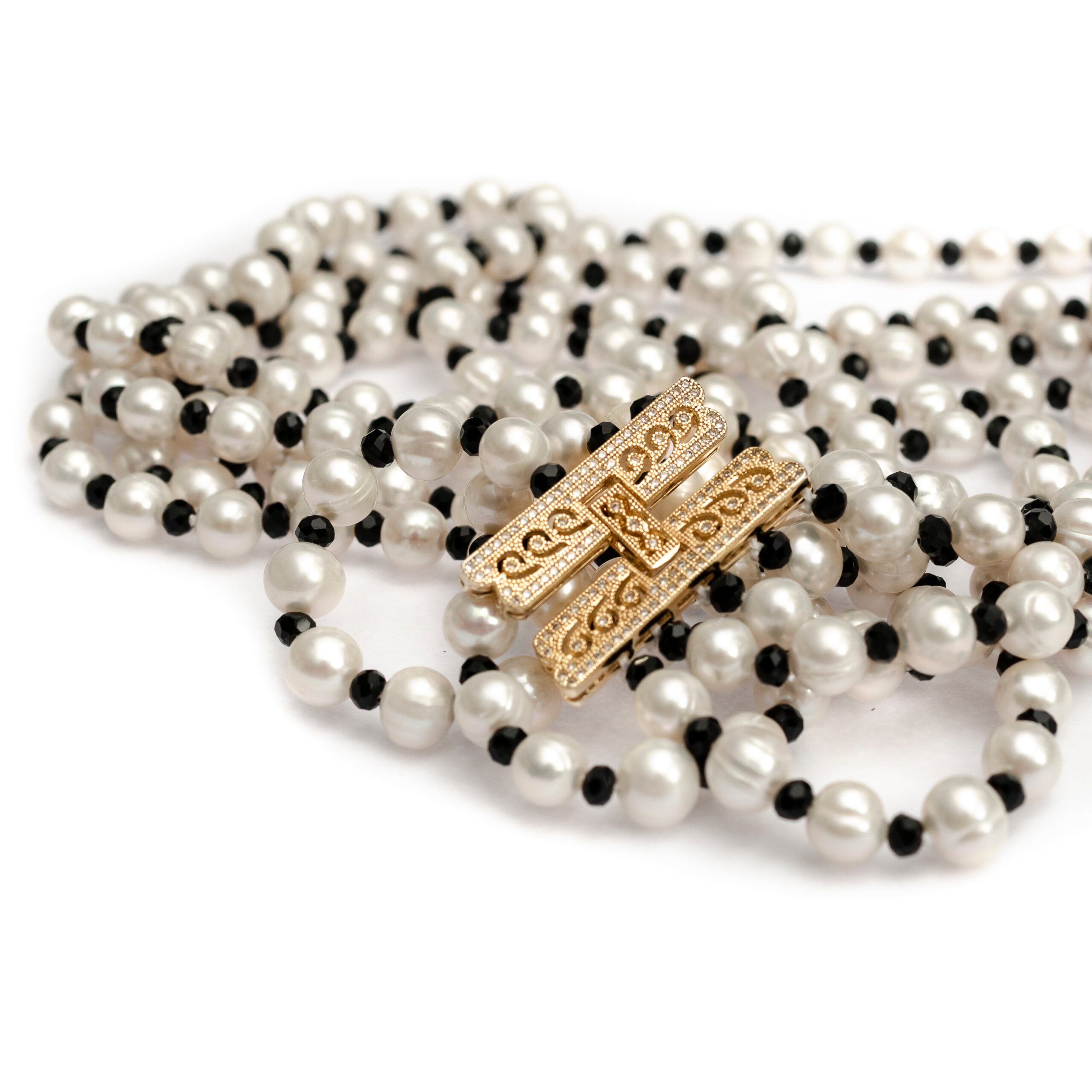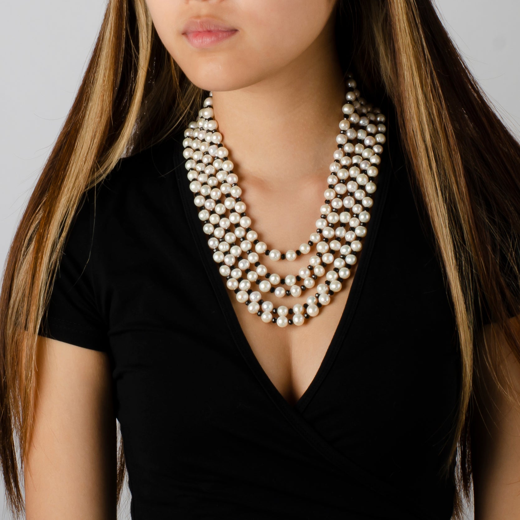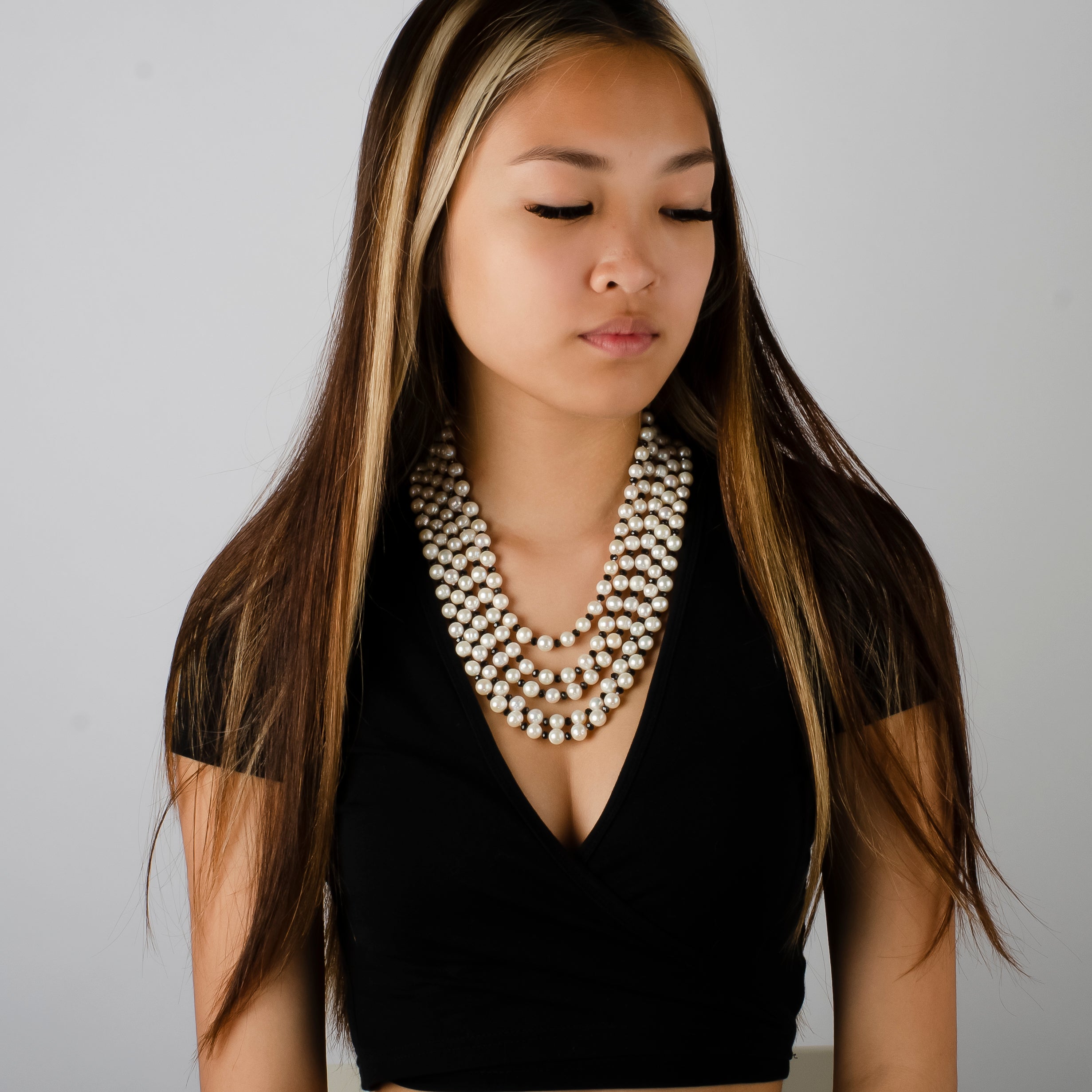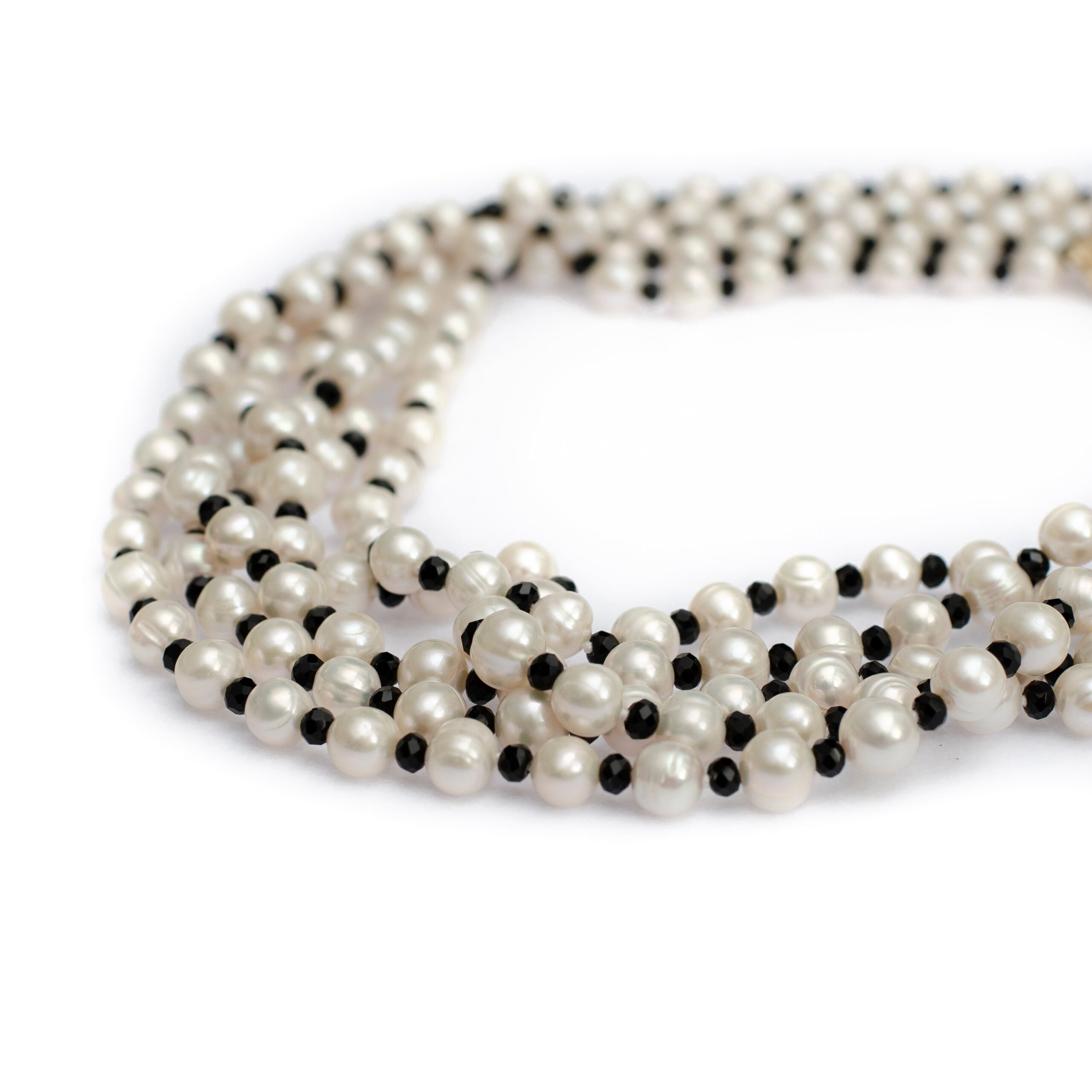 -Each pearl is hand knotted with a black bead in between each pearl                               -Length of the necklace is around 25 inches