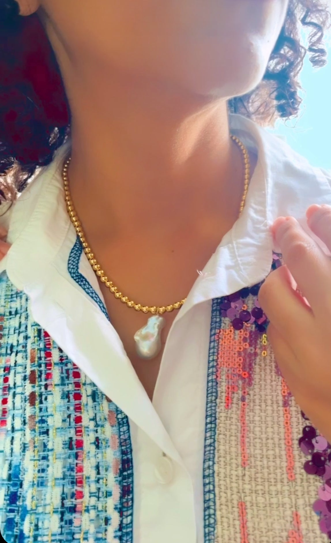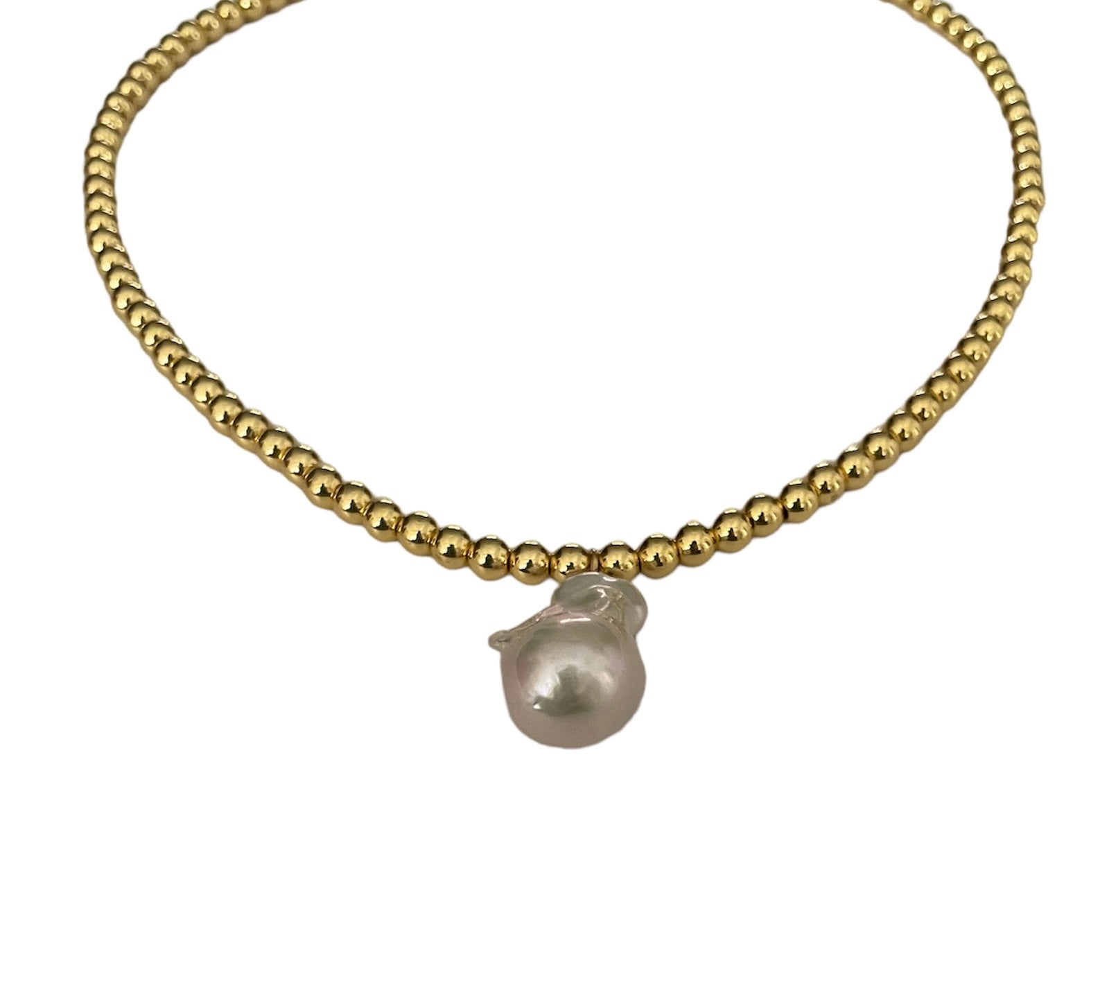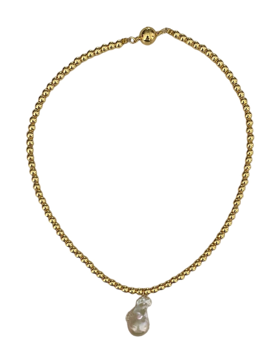 -The gold beads are 18K gold plated and with a chunky, lustrous white baroque pearls                                                                    -Length of the necklace is 20 inches                                          -Due to nature of the natural gemstones and pearls, each piece may slightly vary in size