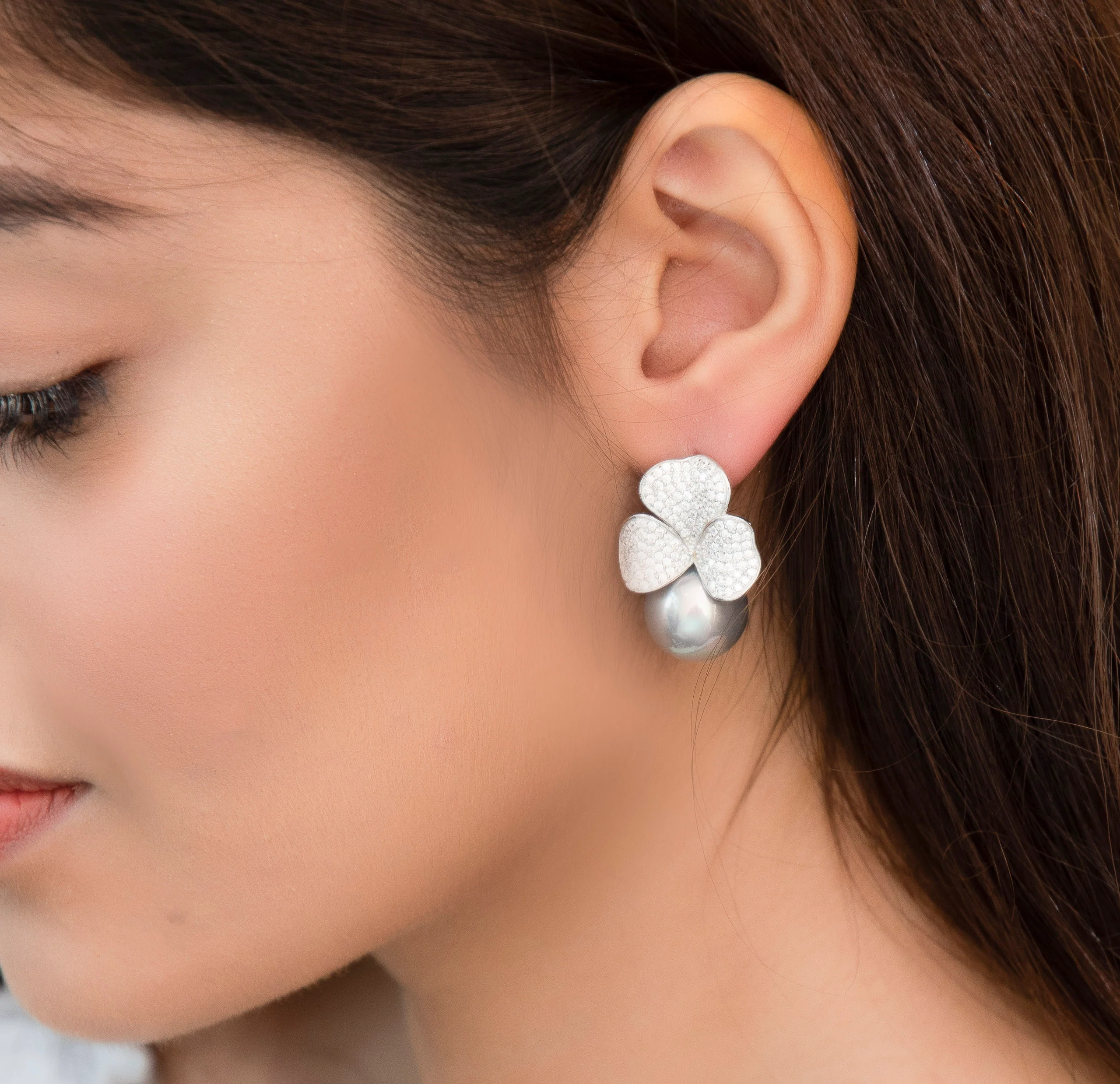 EarringsGREY PEARL WITH FLORAL ZIRCONIA