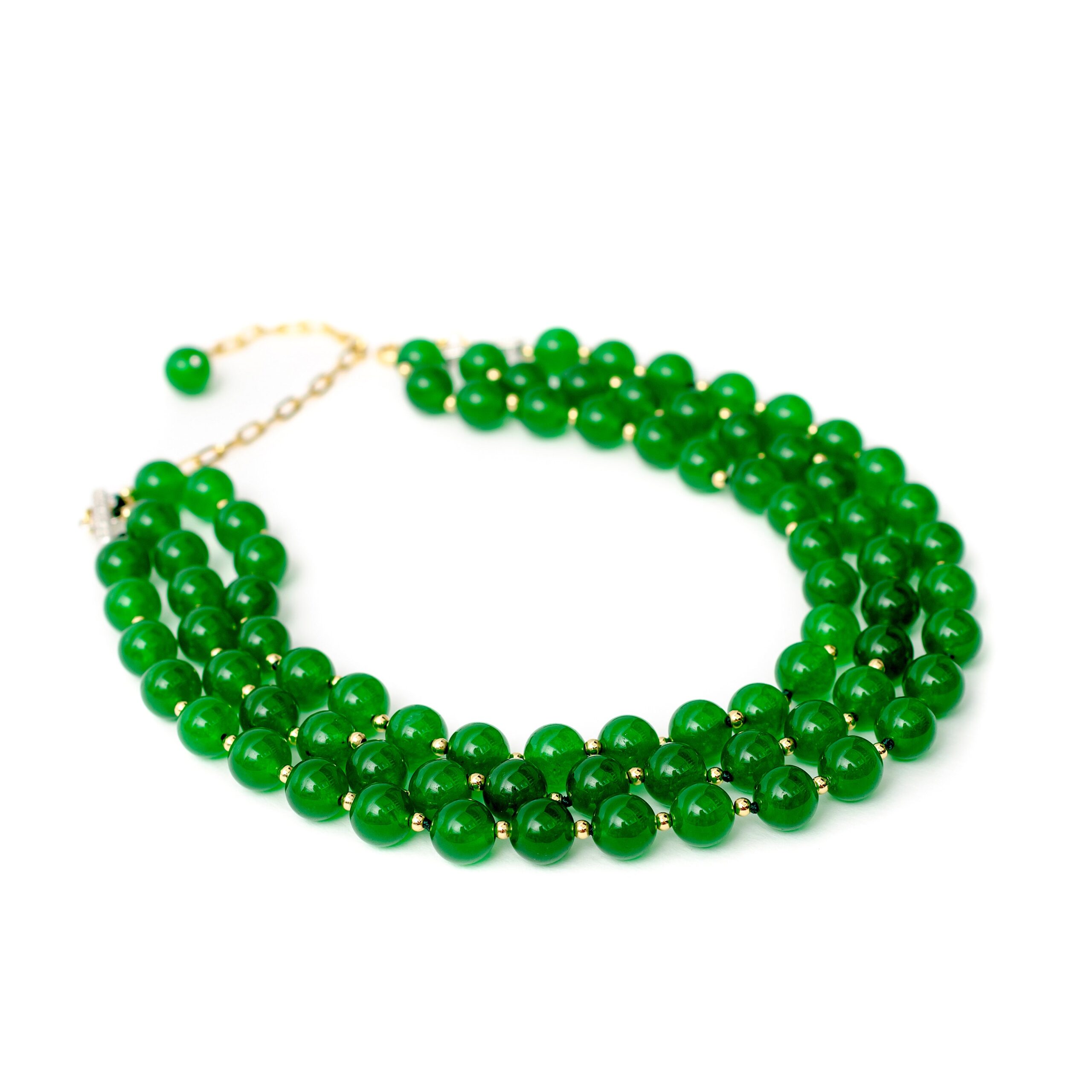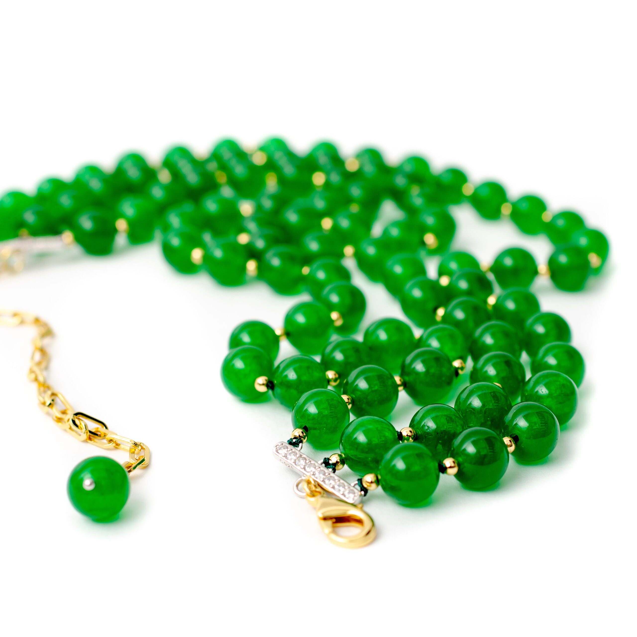 -Jade stones are hand knotted with gold bead in between each stone.These can be adjusted according to your neck size to be worn as a choker and a necklace.