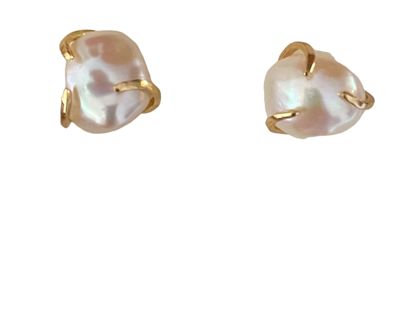 -Beautiful white fresh water pearl tops with a gold claw.                                                              -Post earrings for pierced ears                           Earrings measure roughly 12mm