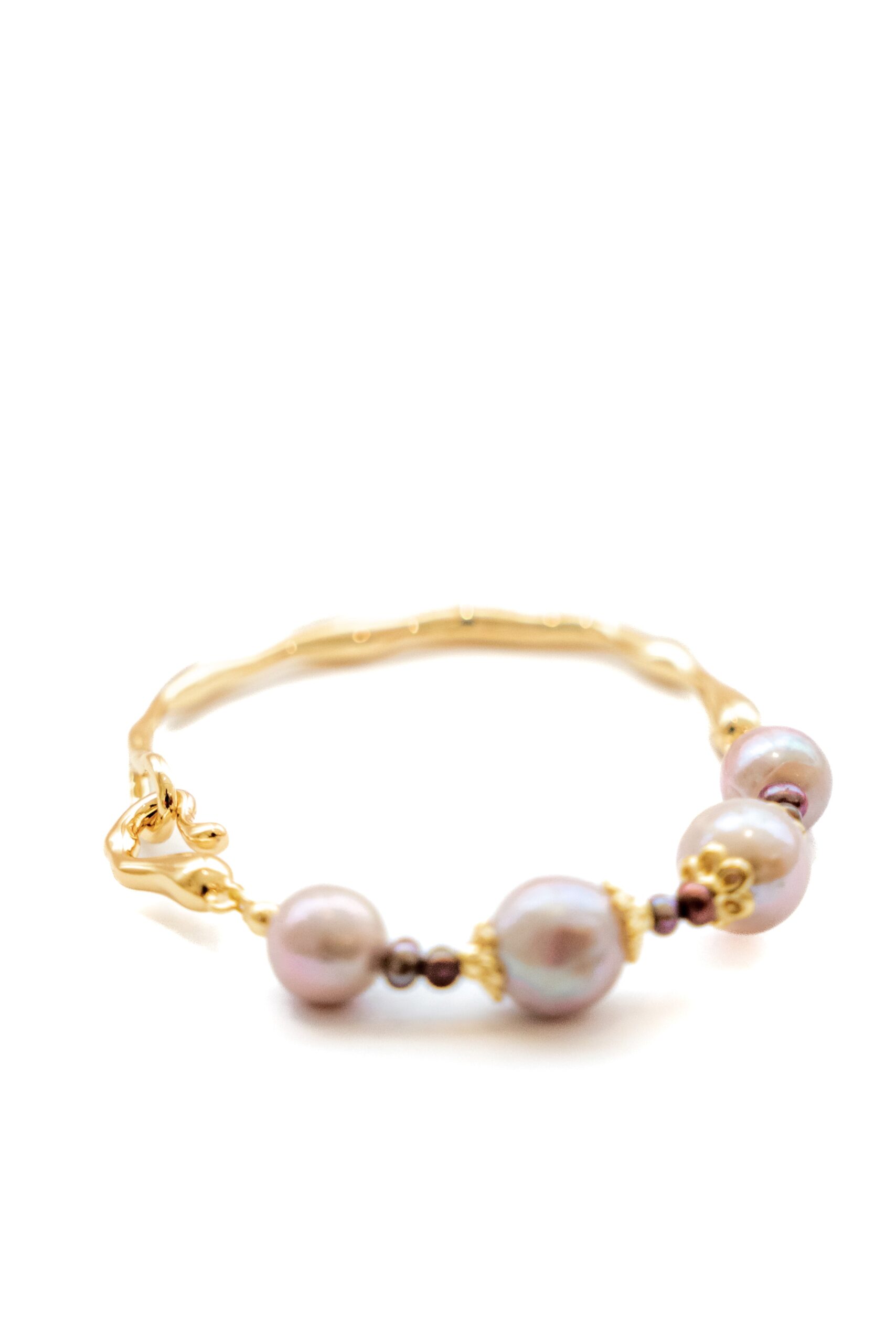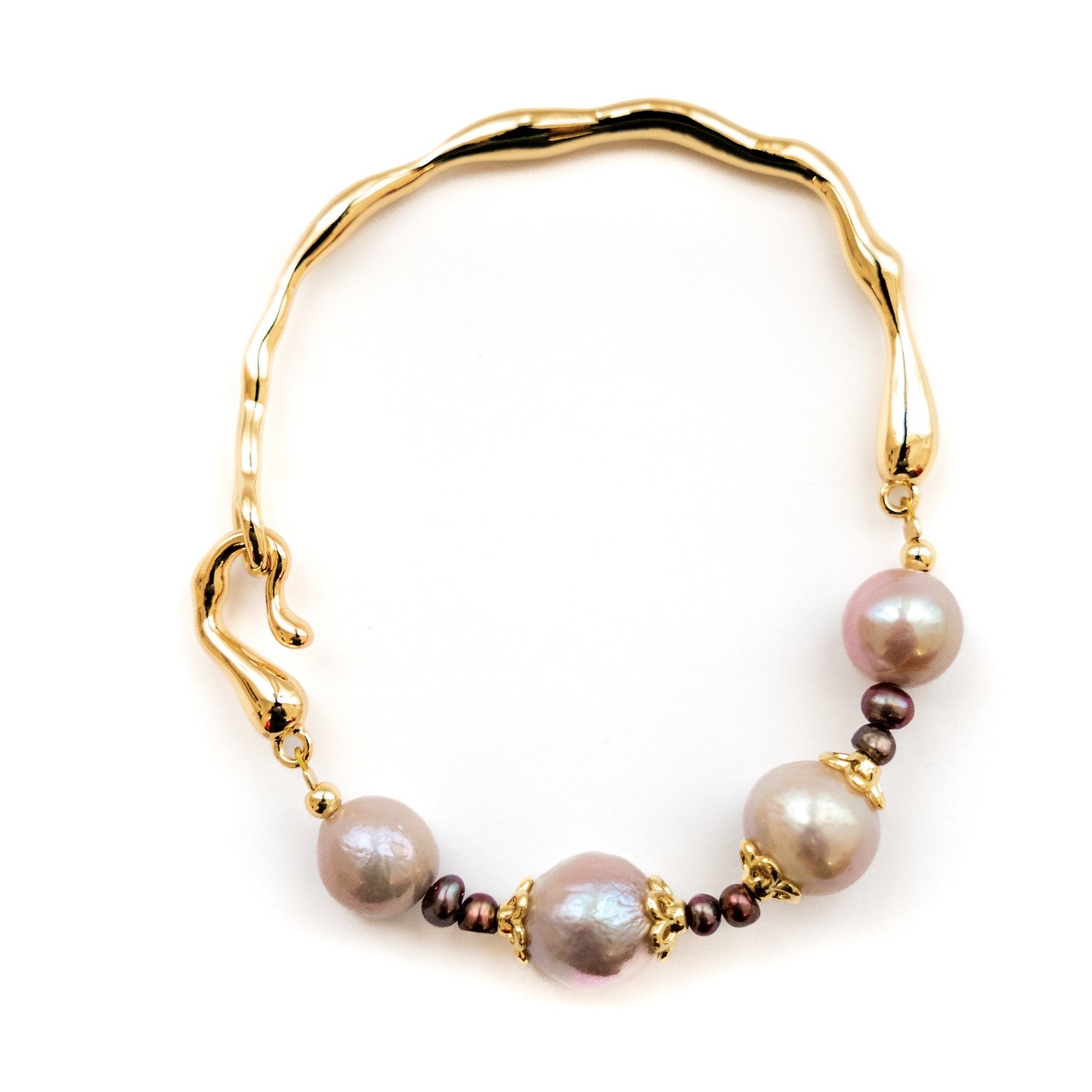 -Beautiful pink and black fresh water pearl bracelet with 18K gold plated loop hook                           Â