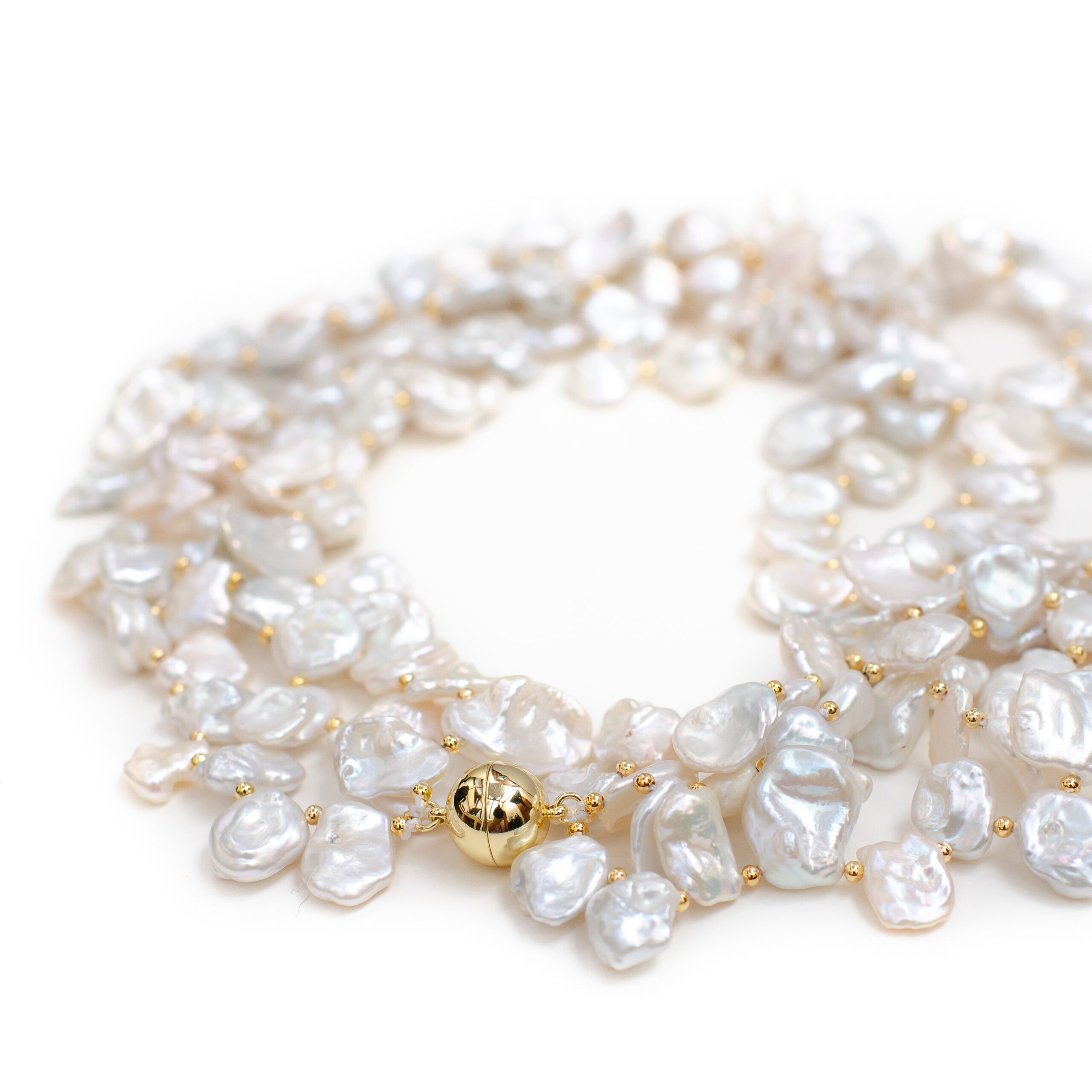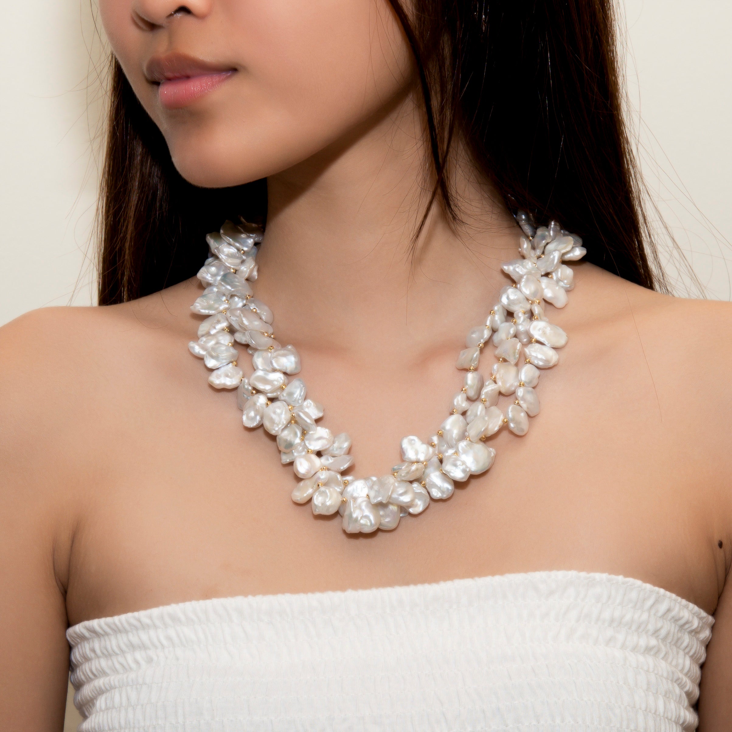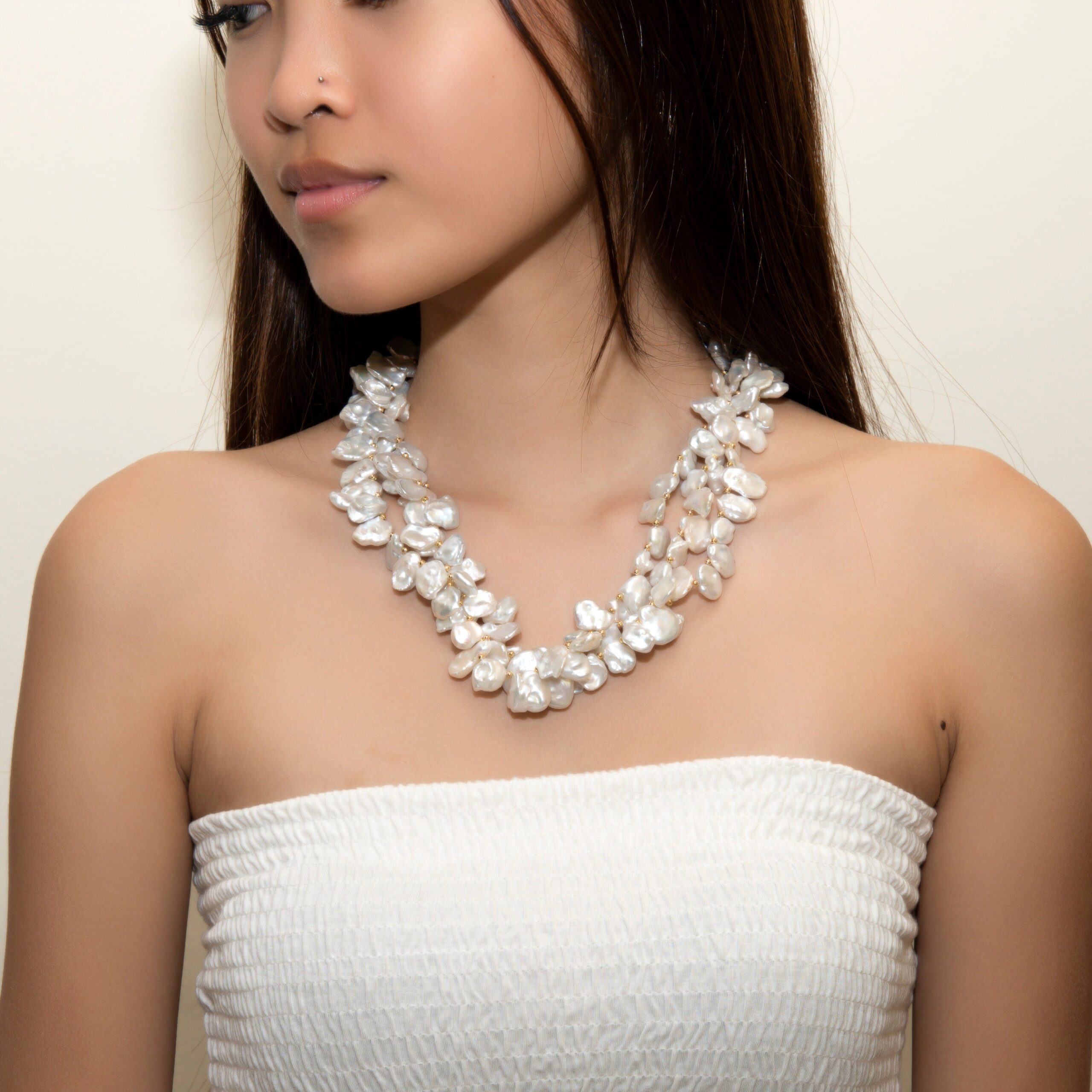 -Beautiful and lustrous white keshi pearl necklace