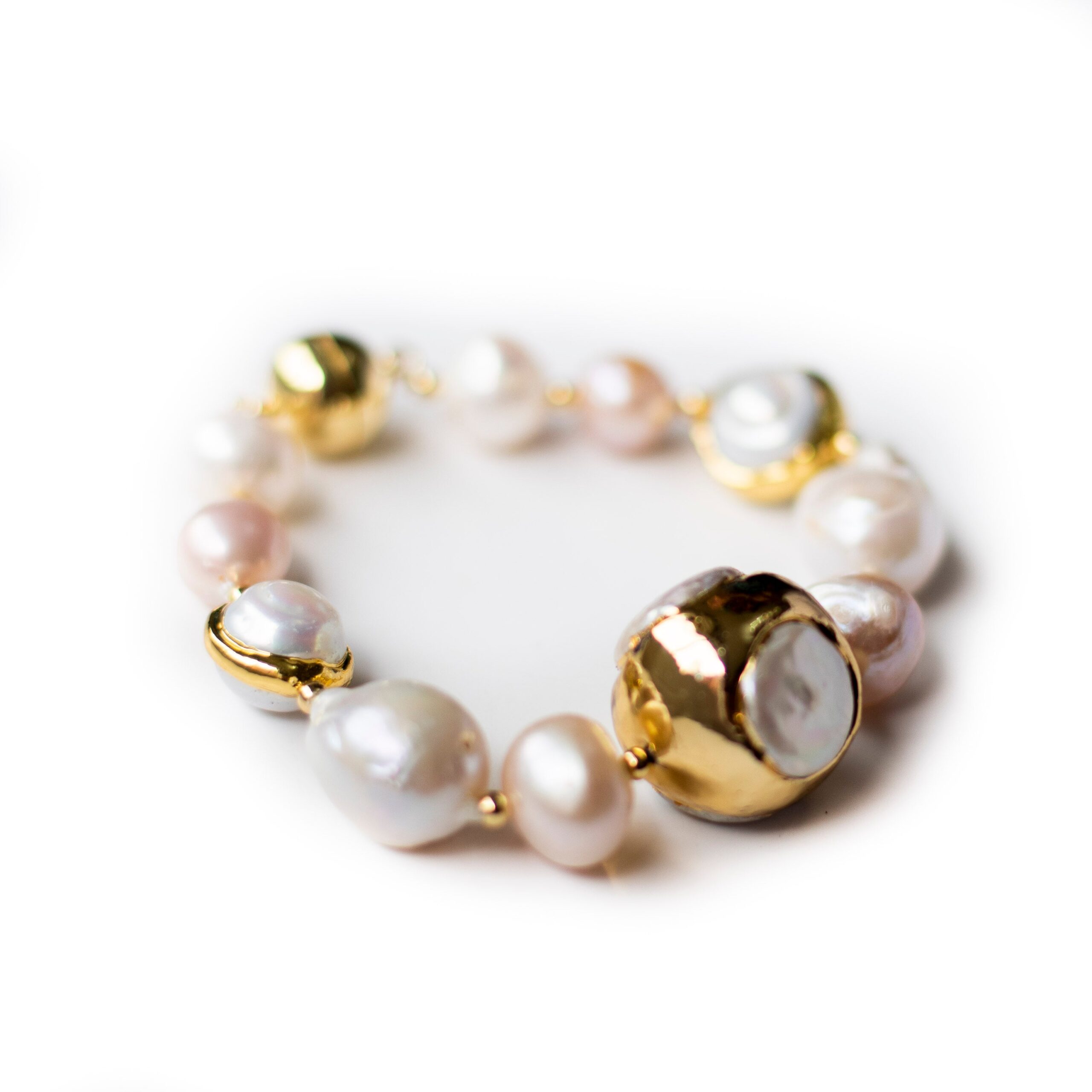 -Fine quality pink and white fresh water pearls hand knotted with pearl gold balls