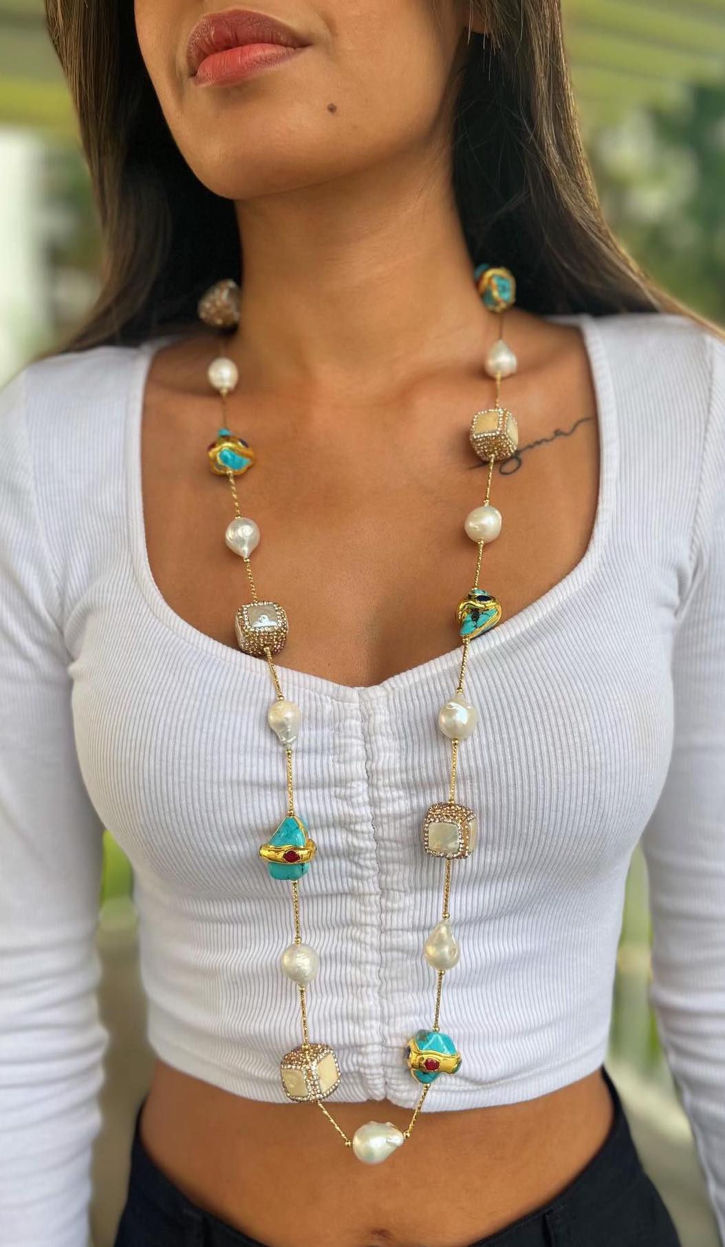Tags: baroque pearls, bling, shimmer necklace, Turquoise