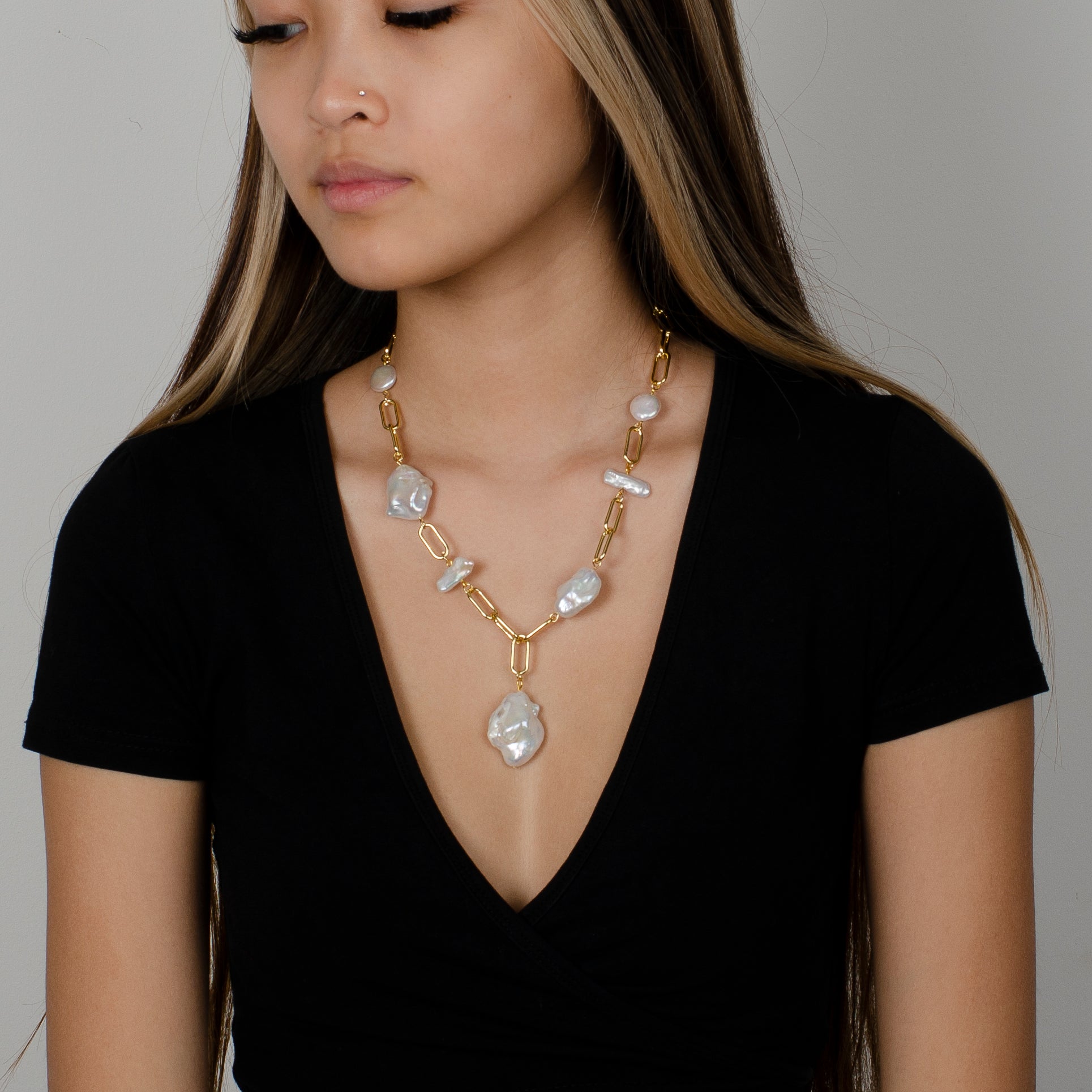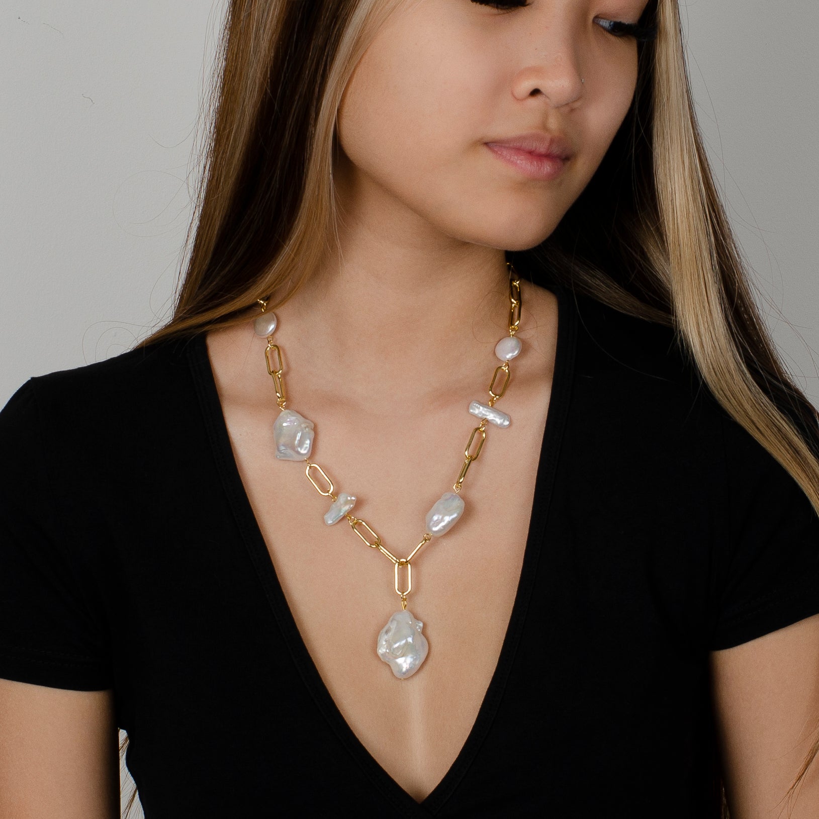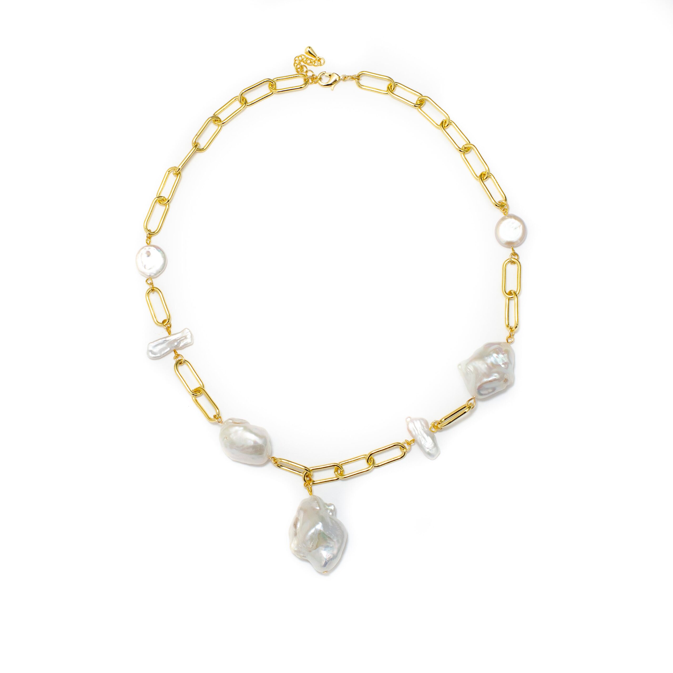 -Beautiful gold loop chain with chunky baroque drop