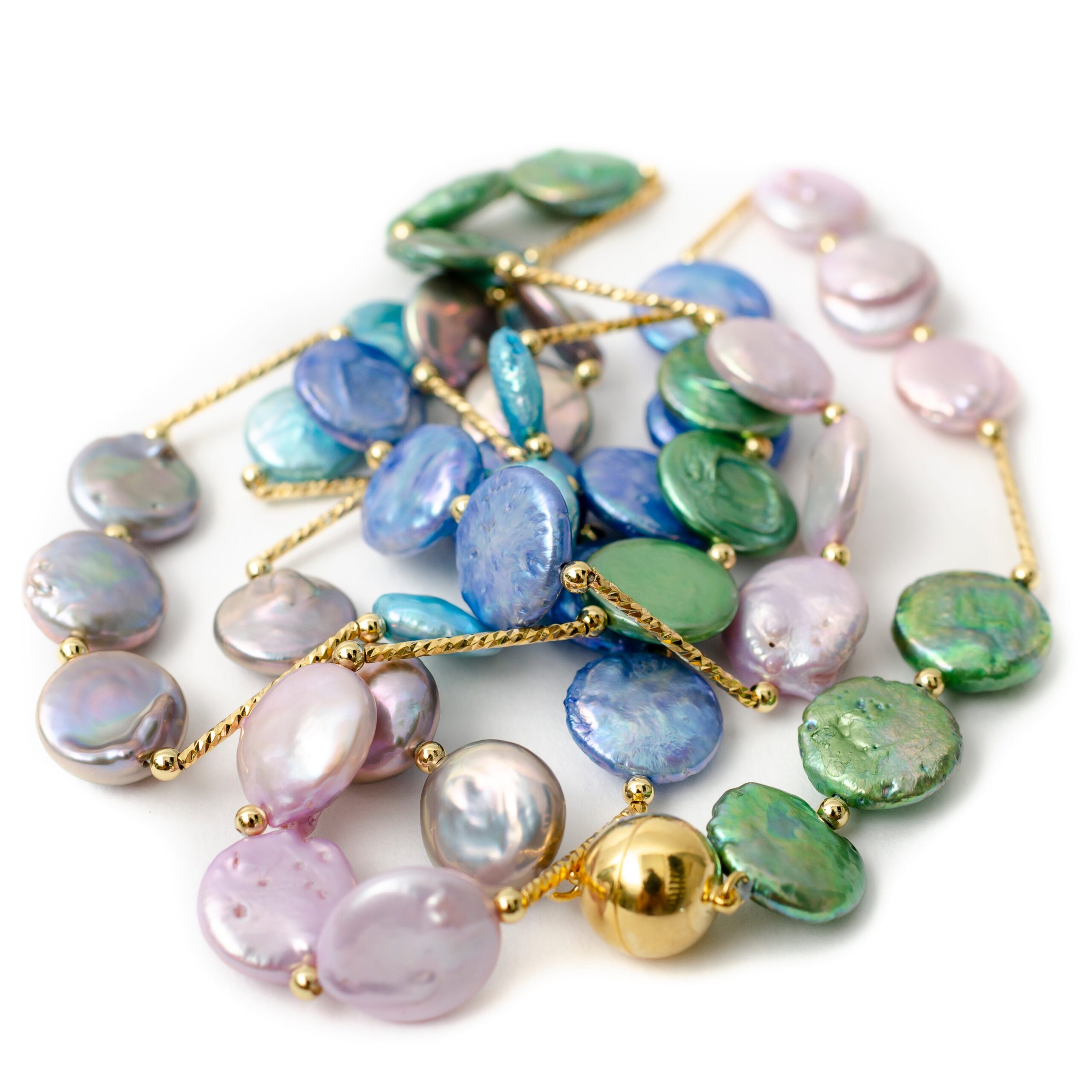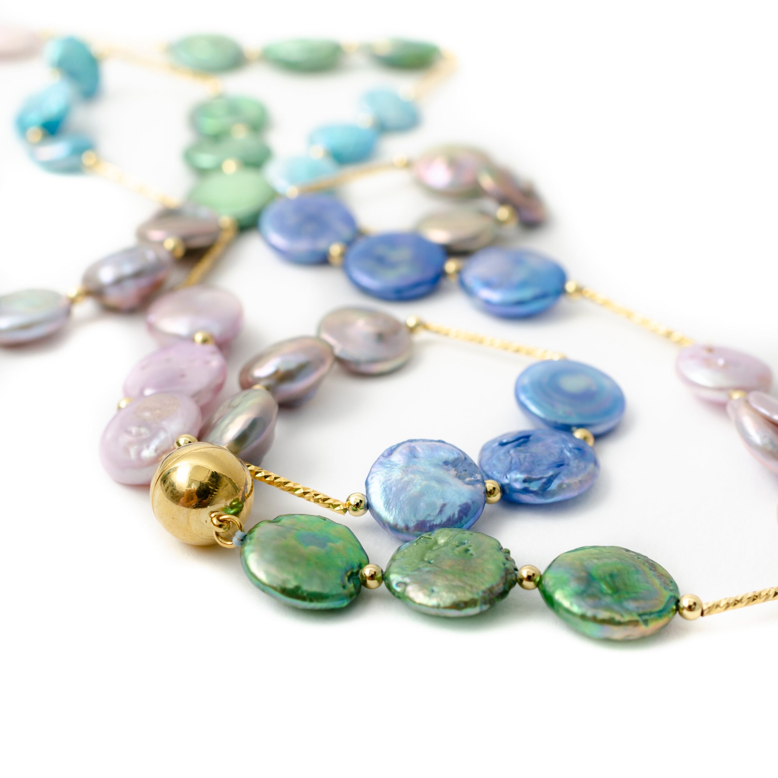 -Each pearl is knotted with with 18K gold plated wire and it has a comfortable magnetic gold clasp.You can wear it long or double it as well