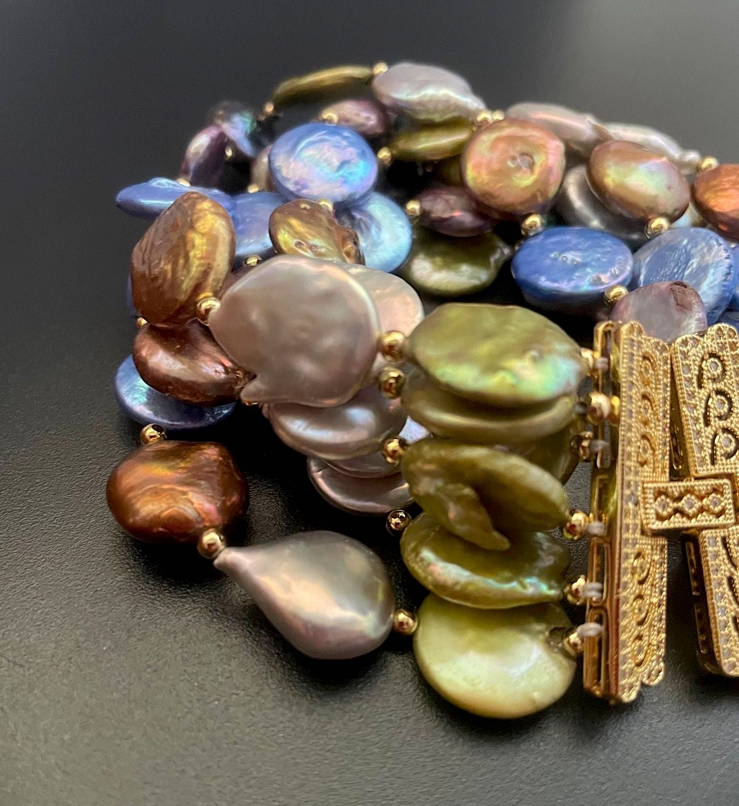 -Classic coin pearl with deep shades of fresh water pearls