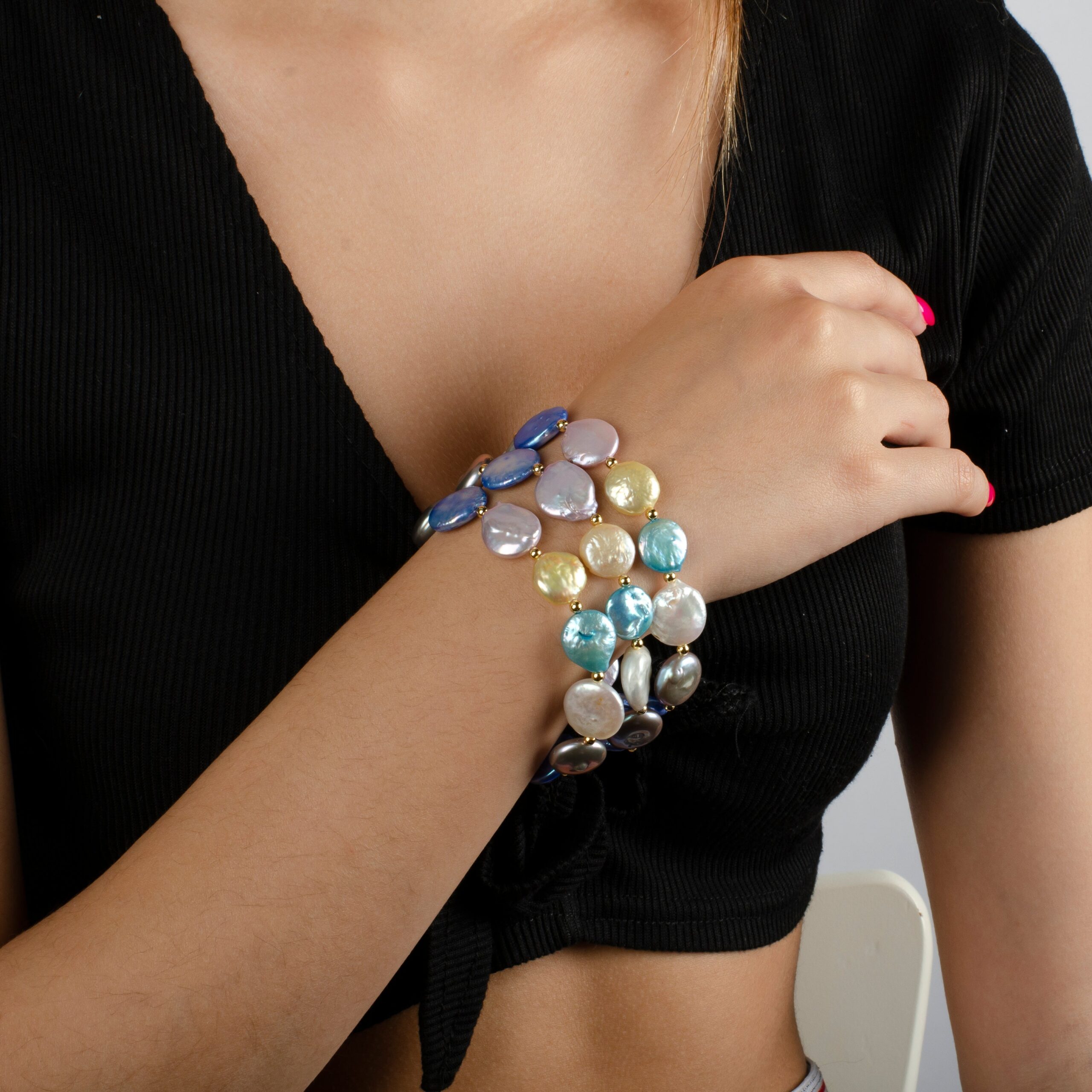 MULTI COLURED COIN PEARL BRACELET