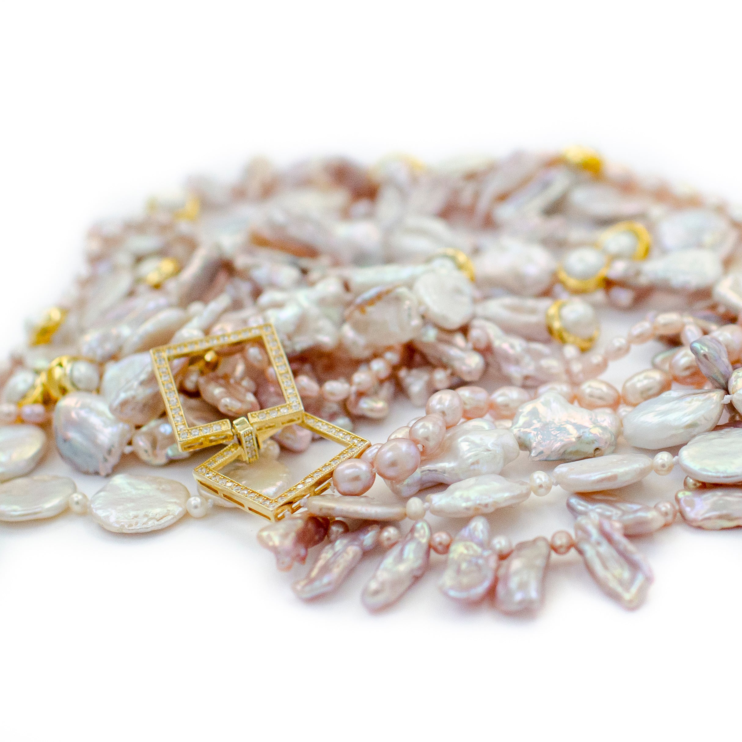 -Each pearl is hand knotted.There is a cluster of tooth pearls, coin pearls, baroque pearls and round fresh water pearls.