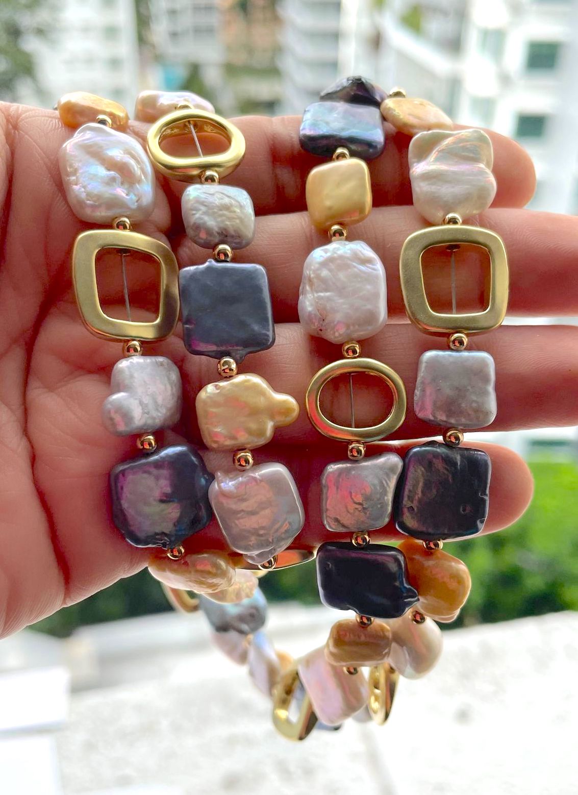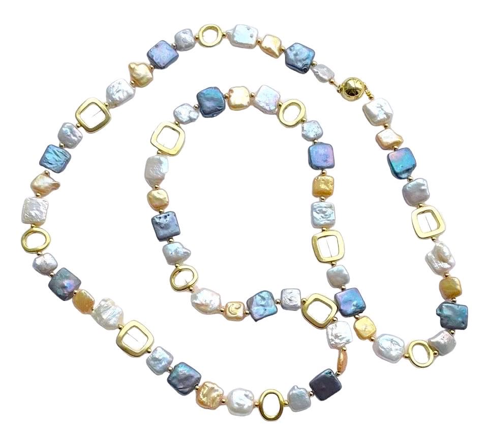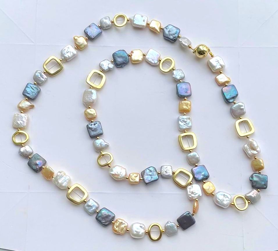 -Necklace is made with multi coloured round and square shapes fresh water coin pearls