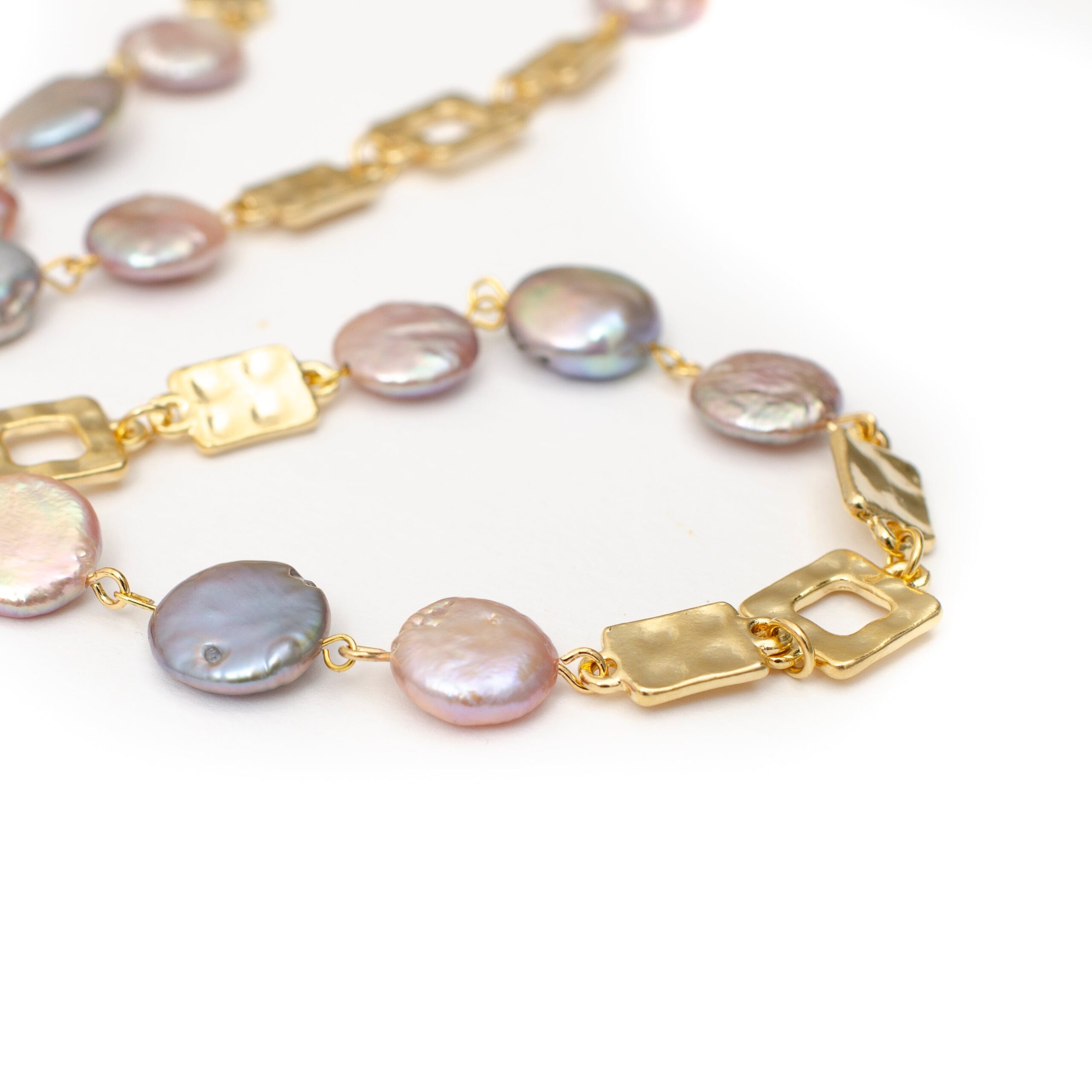 -Necklace is made with pink and grey fresh water coin pearl
