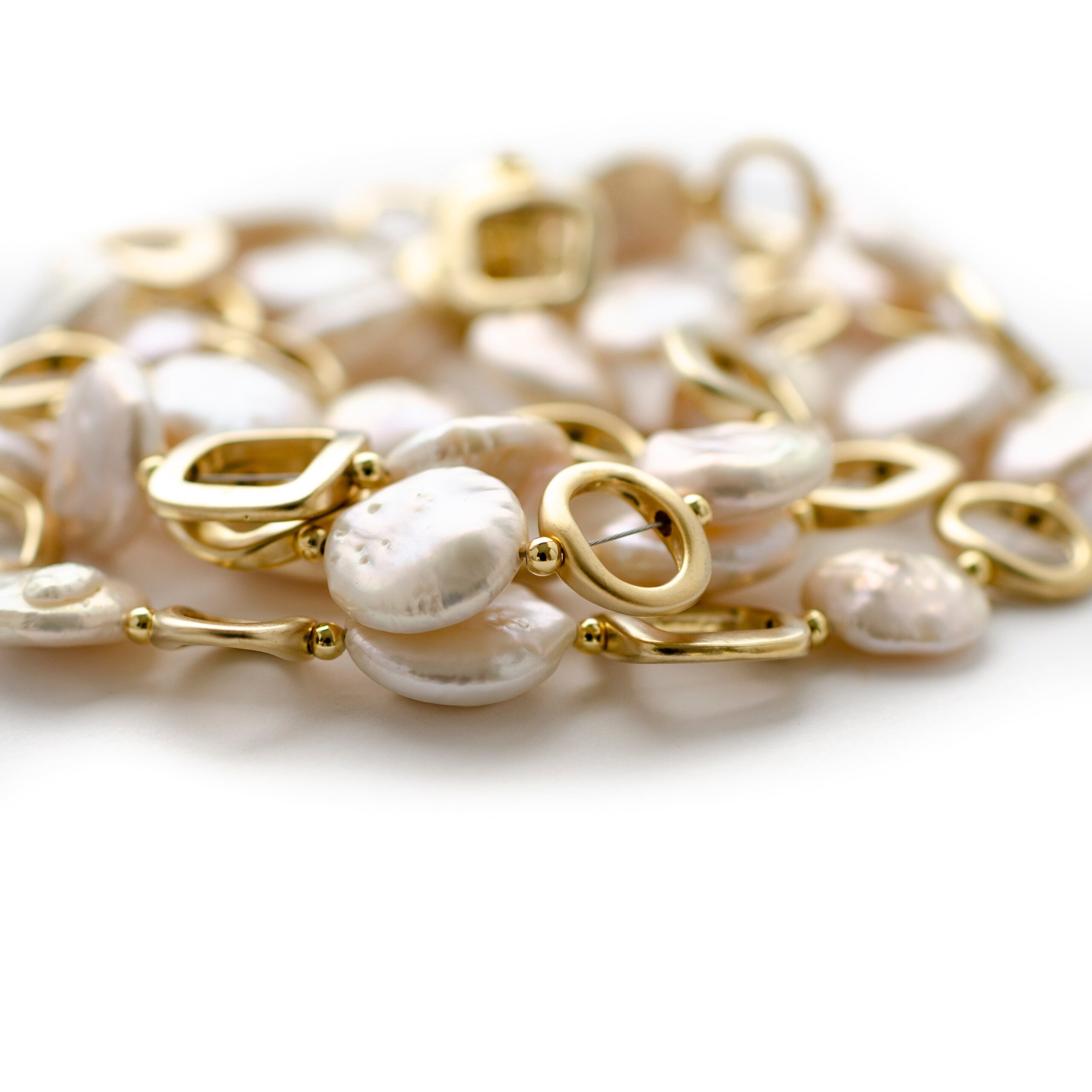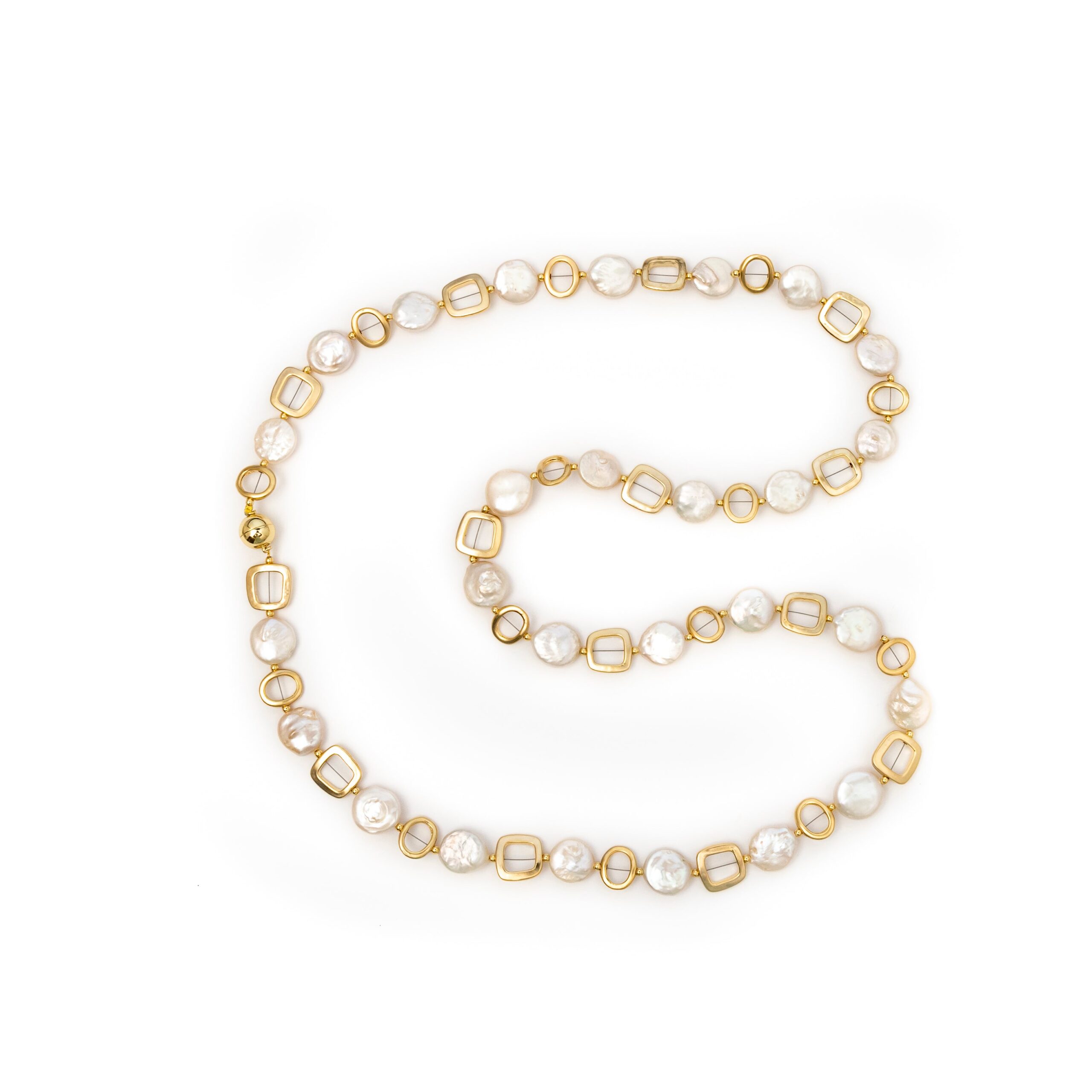 -Handmade with coin pearls and gold plated nickel free squares
