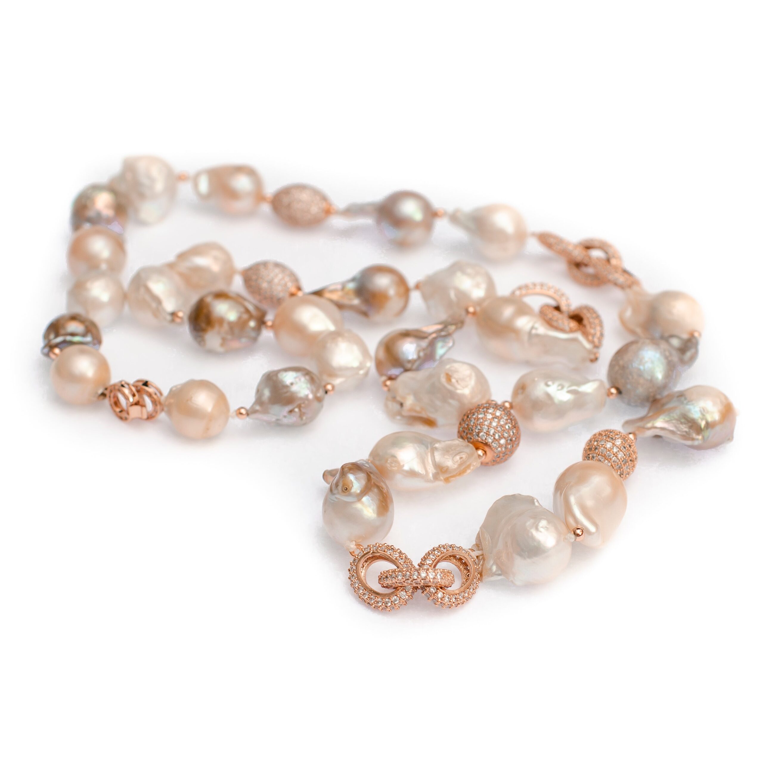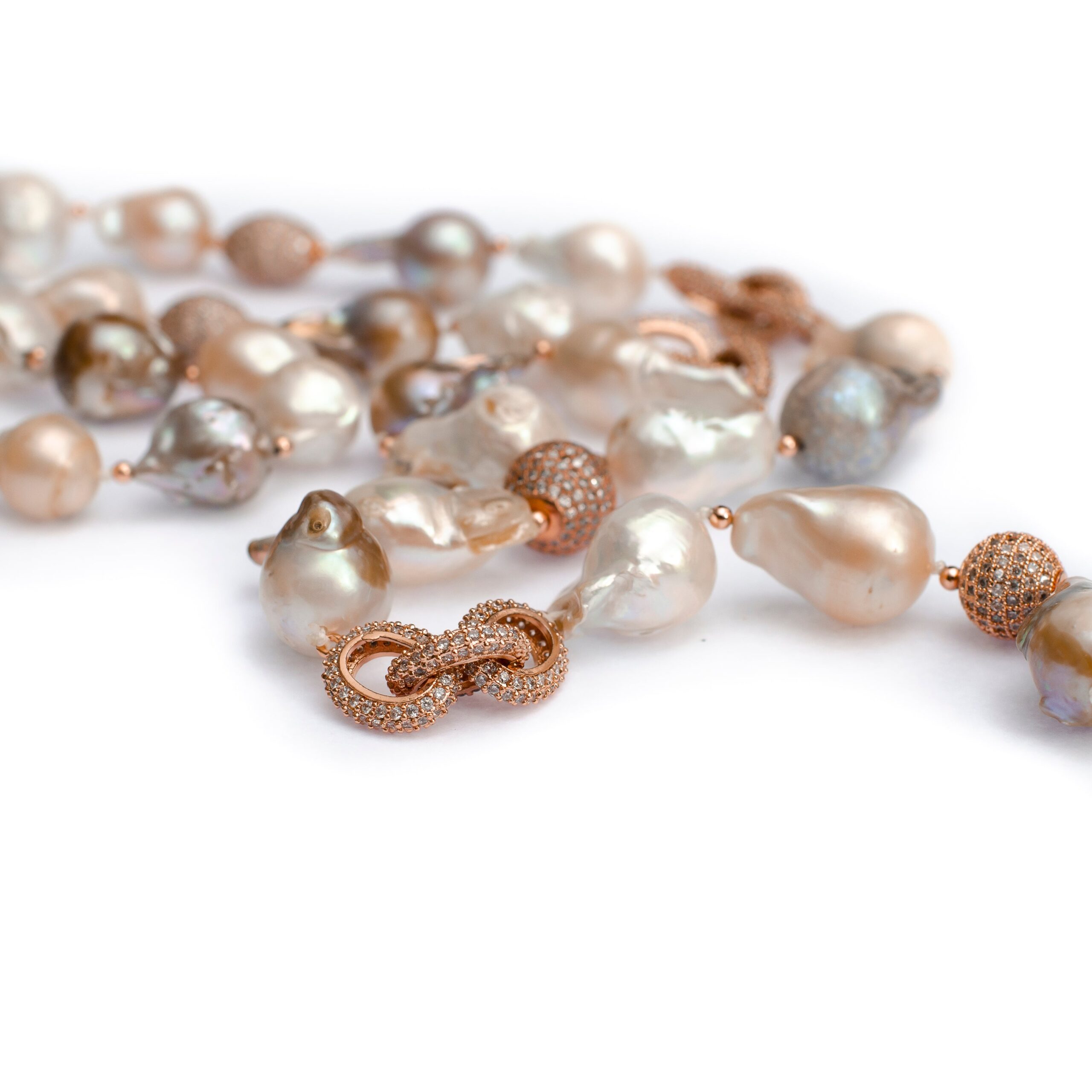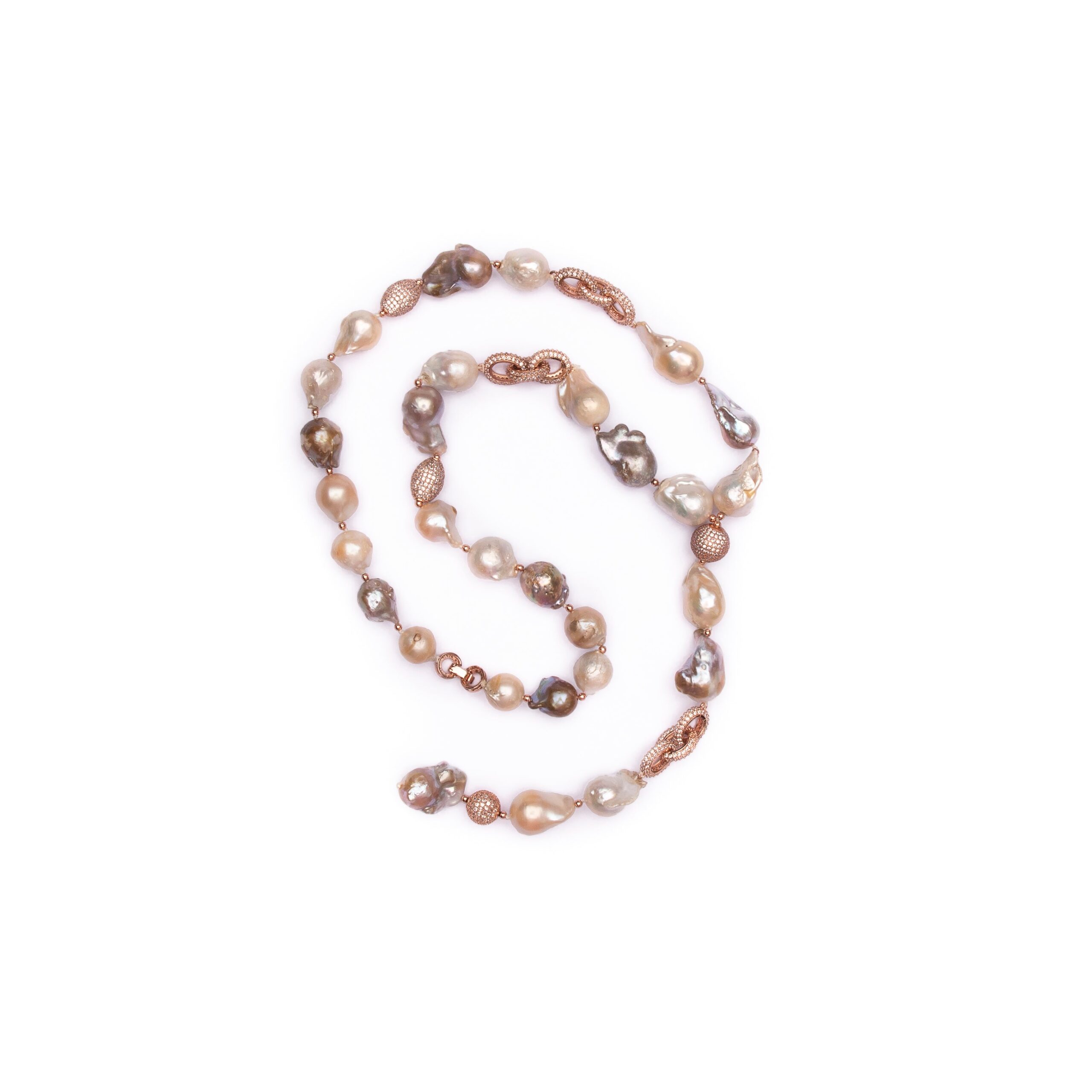 -Necklace is made with fine quality pastel shades of baroque pearl                                                             -The necklace is hand knotted with rose gold beads and loop in between                                                                                      -Length of the necklace is 40 inchesÂ