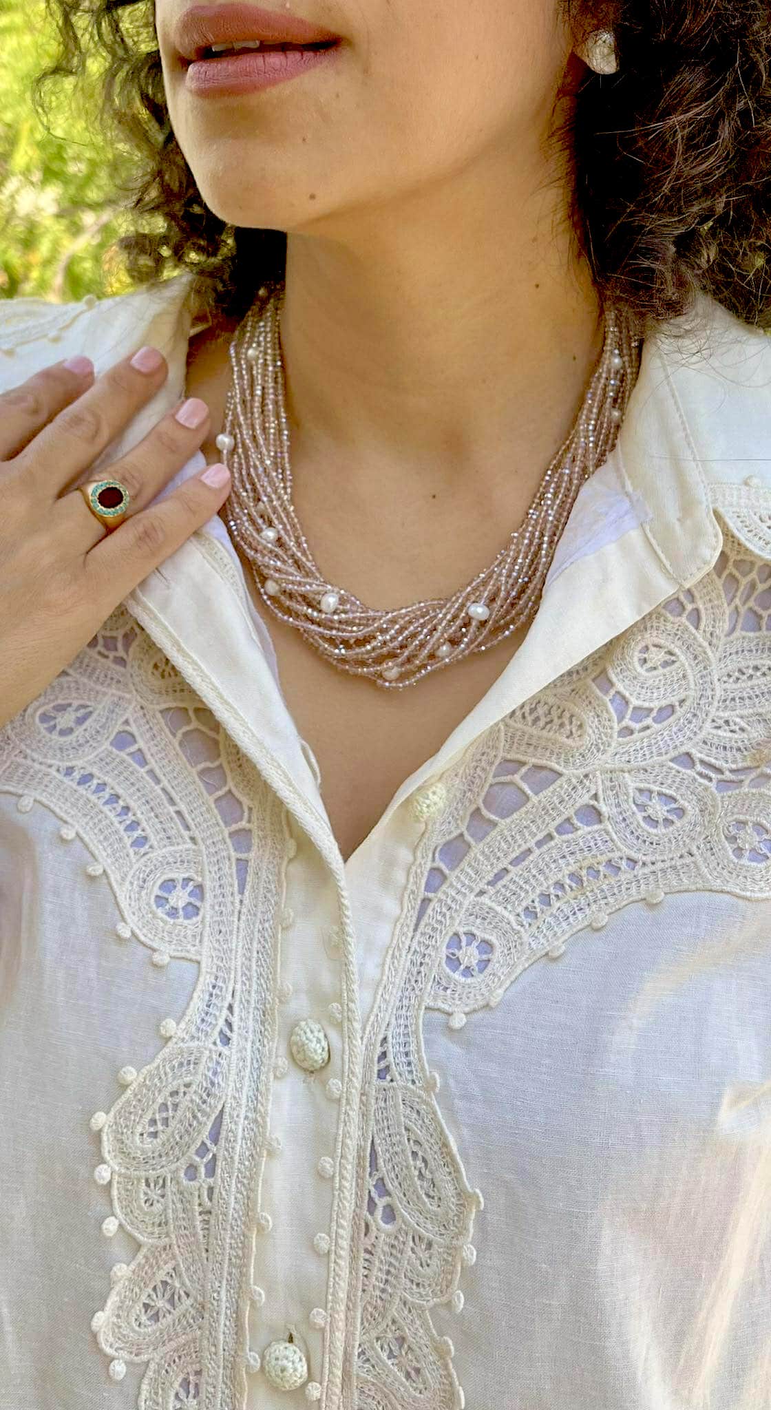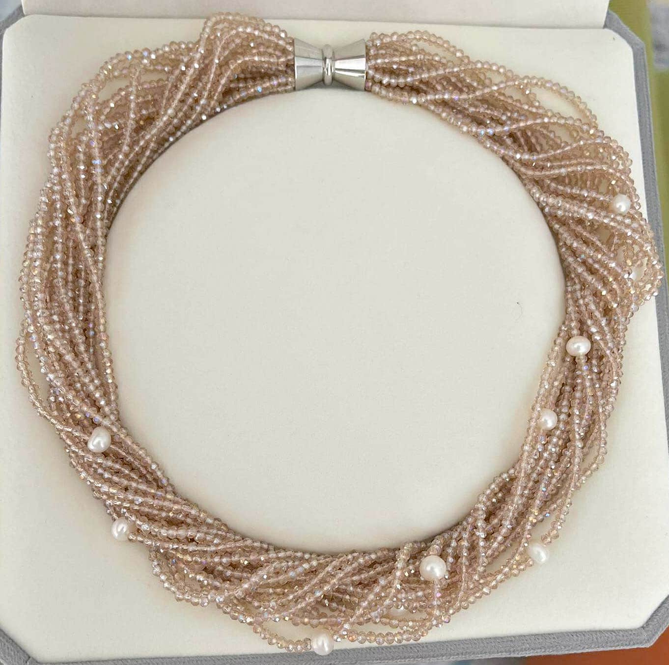 -Beautiful peach crystal and white fresh water pearl necklaceÂ
