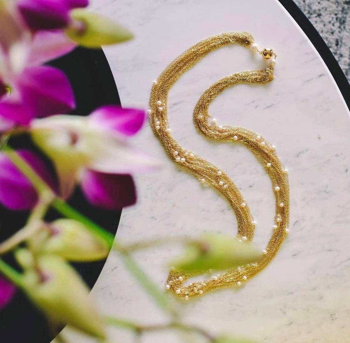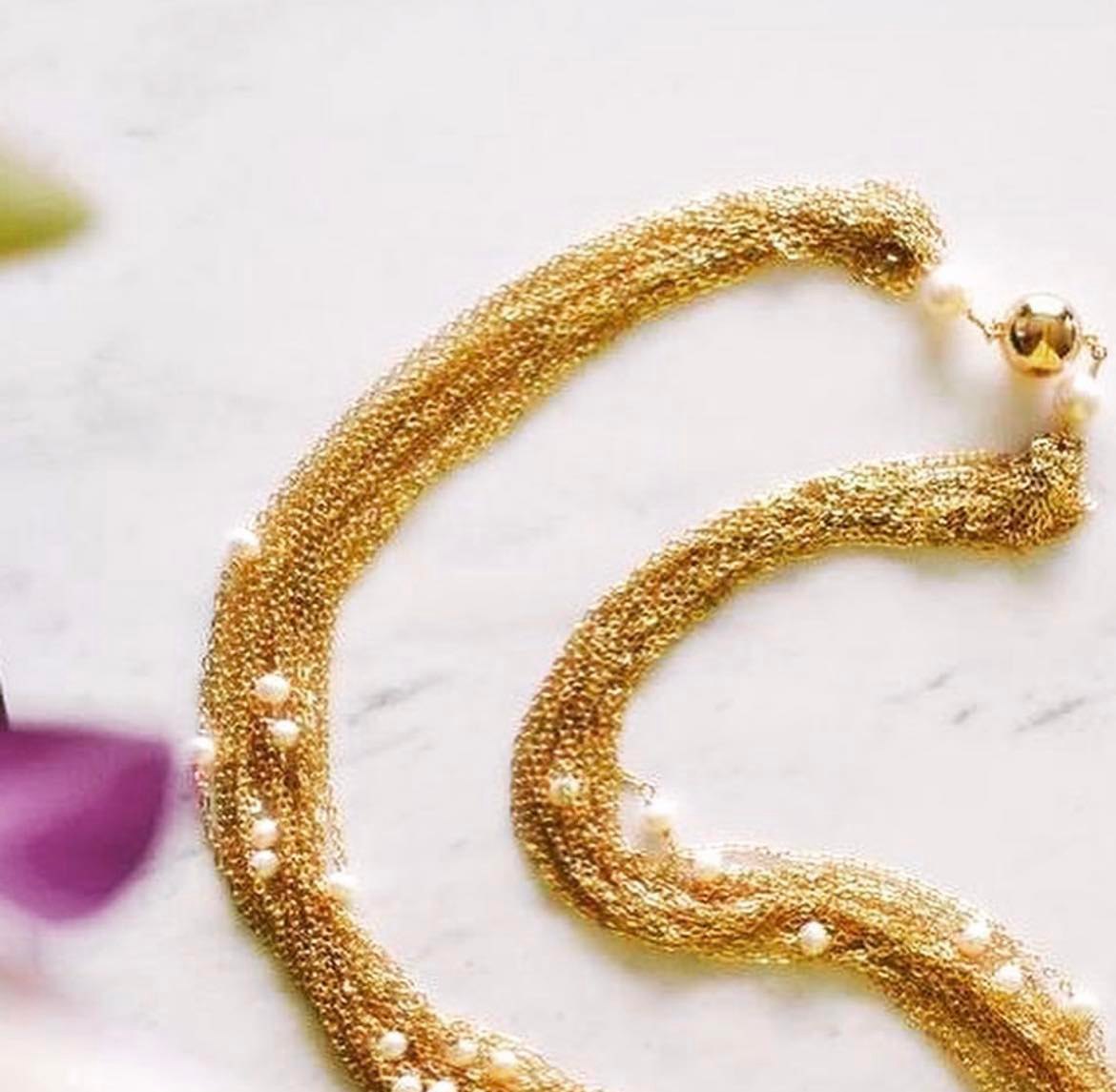 -Beautiful white  fresh water pearls strung in cluster of gold chains