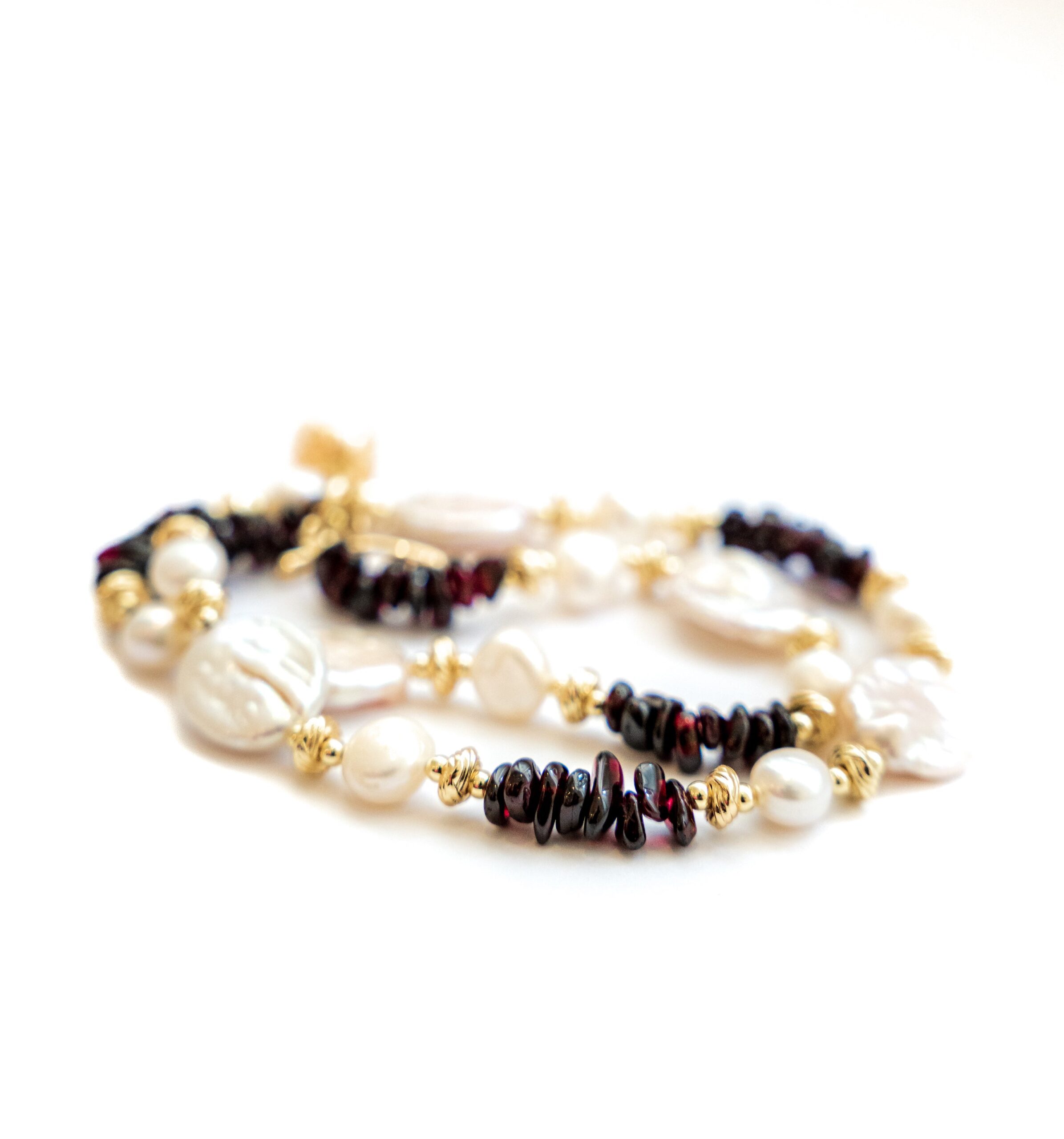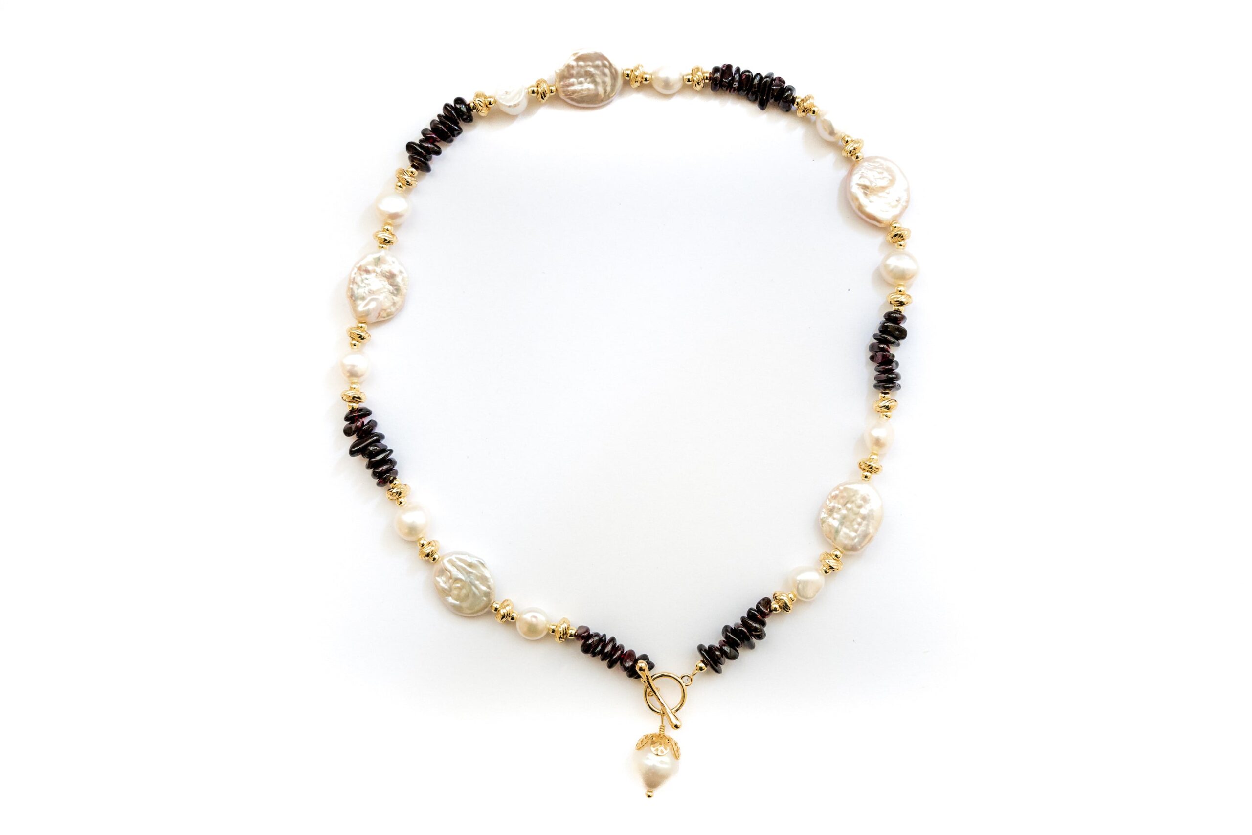 -Necklace is made with fine quality fresh water pearls with natural garnet stone