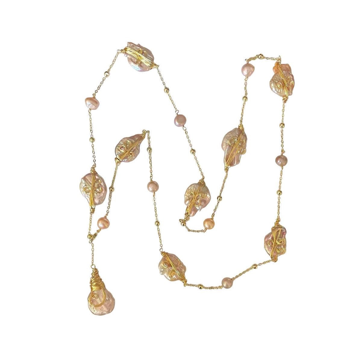 -The pearls are hand strung with 18K gold plated loop chain