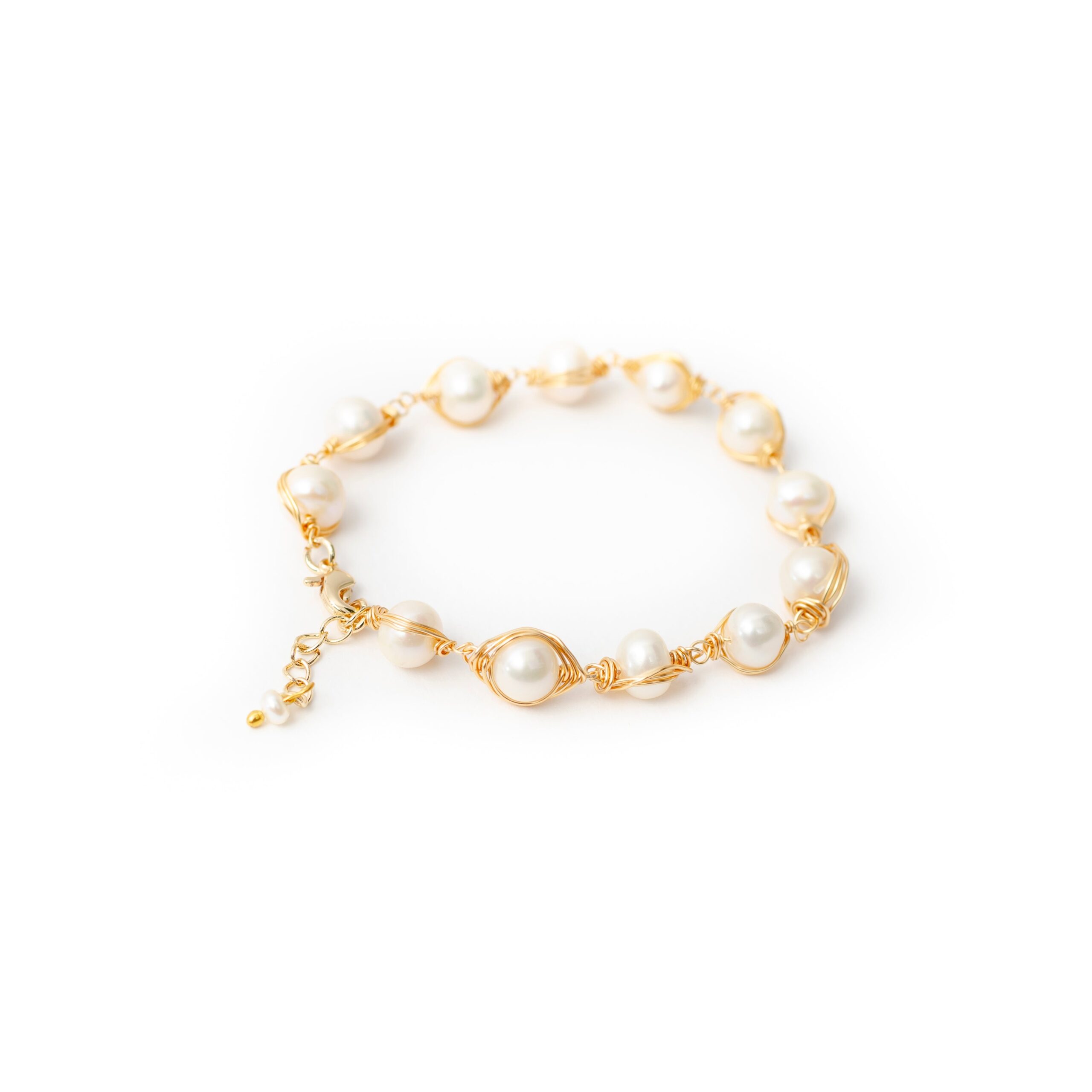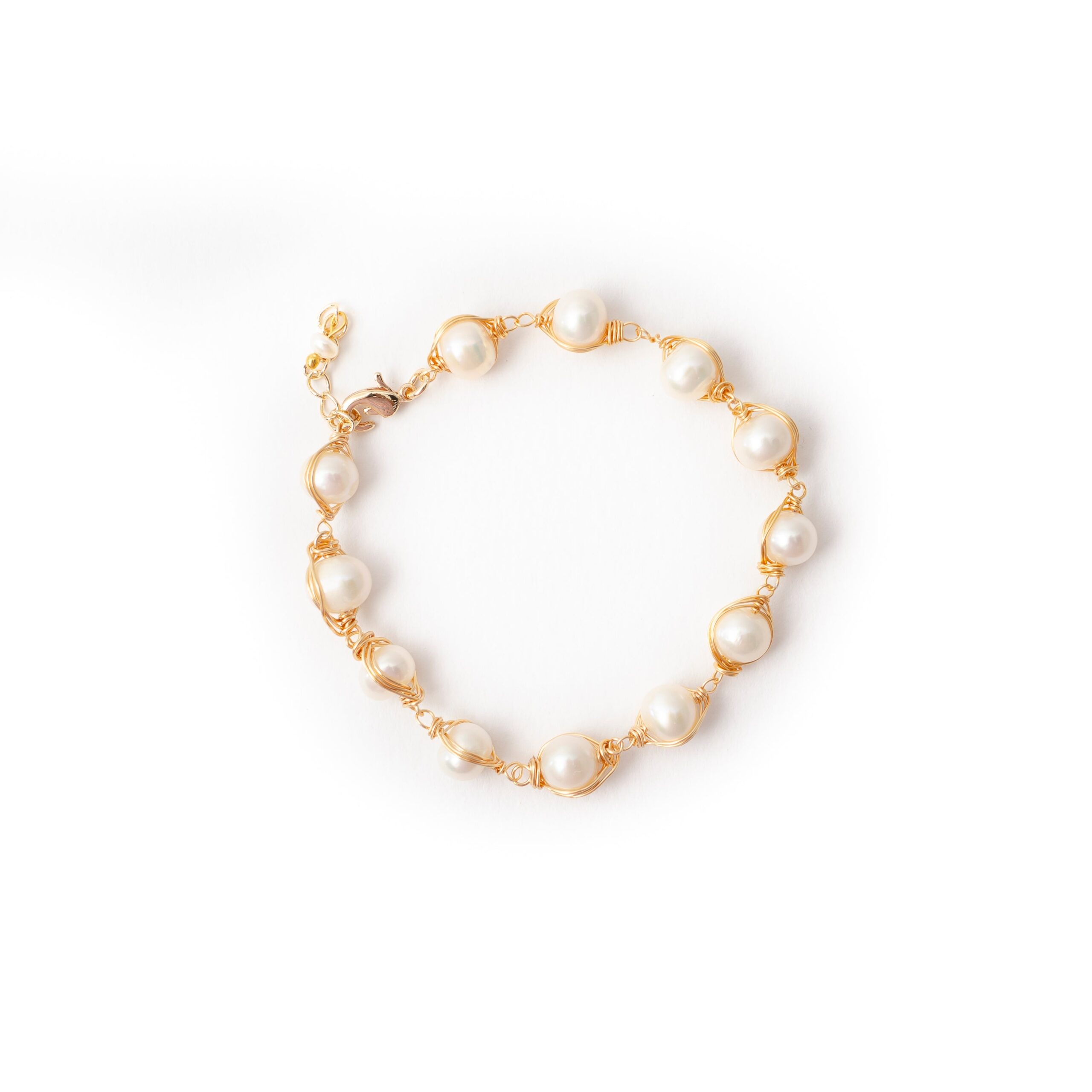 -Beautiful white fresh water pearl bracelet wrapped in a 9K gold