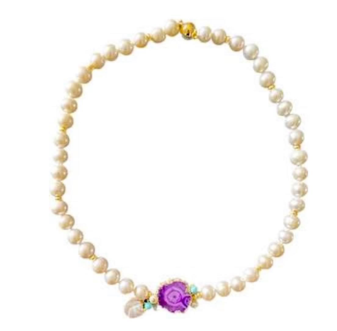 PINK AGATE AND PEARL NECKLACEPINK AGATE AND PEARL NECKLACE