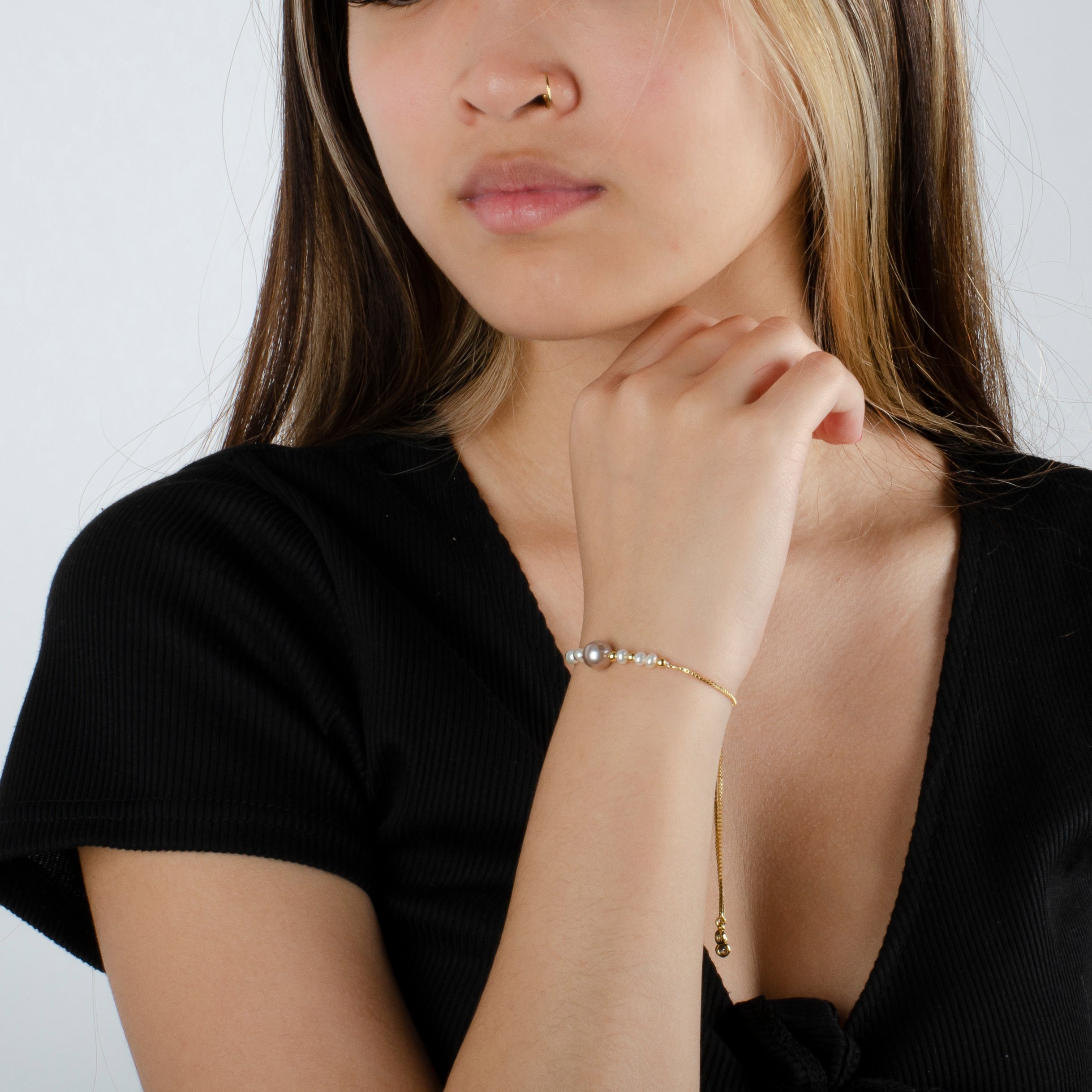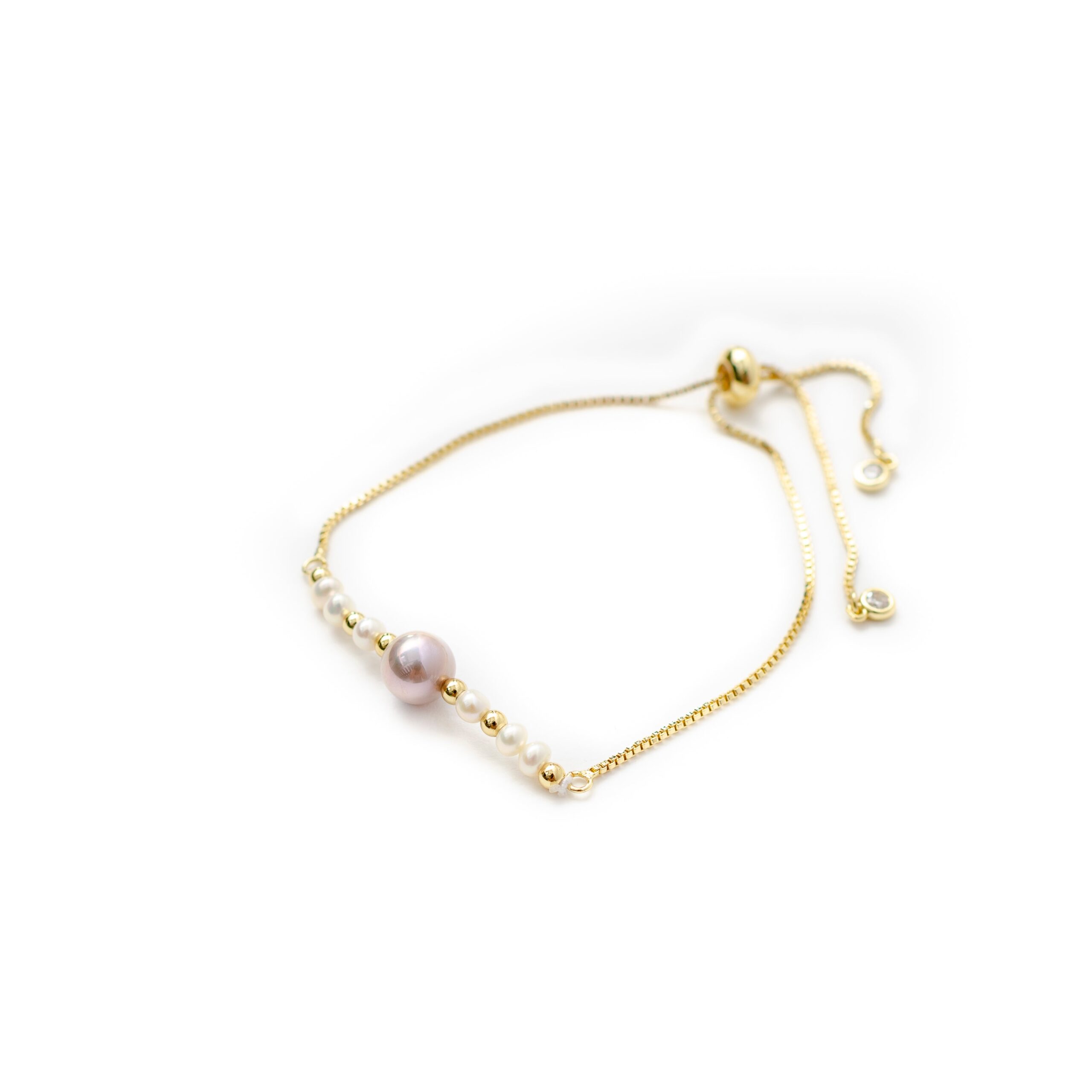 -Beautiful white and pink fresh water pearl bracelet with 18K gold plated chain