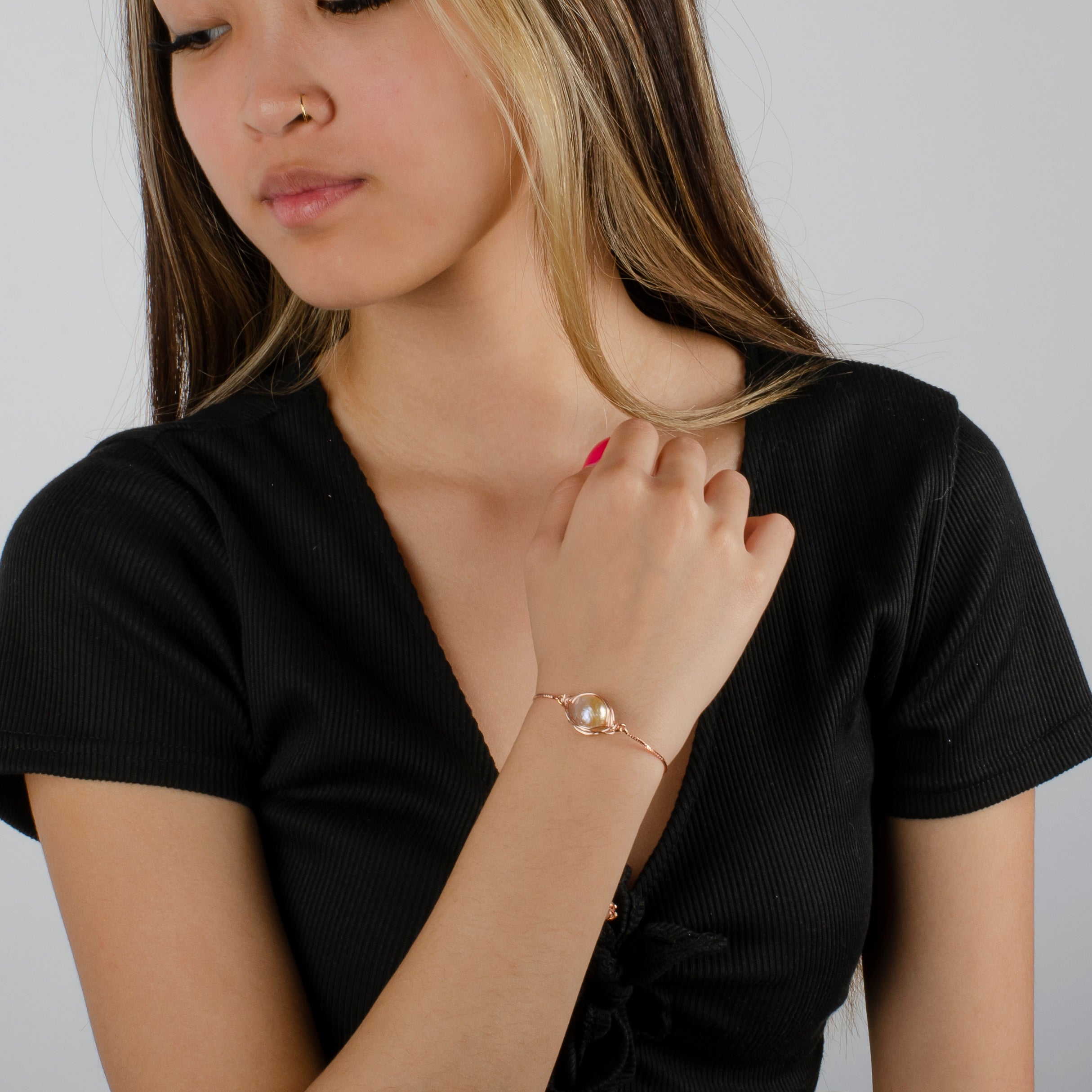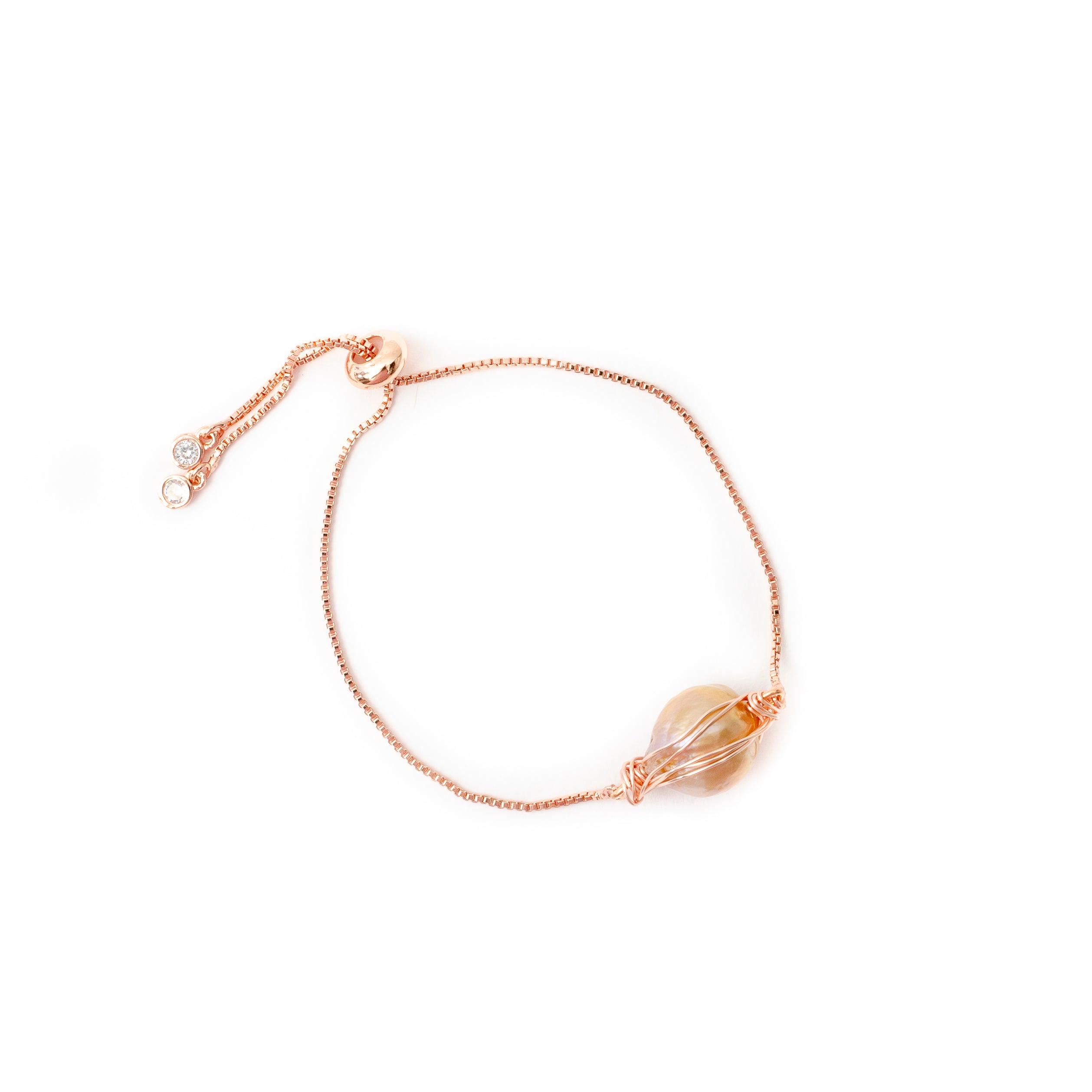 -Beautiful pink fresh water pearl bracelet set in rose gold chain and wire