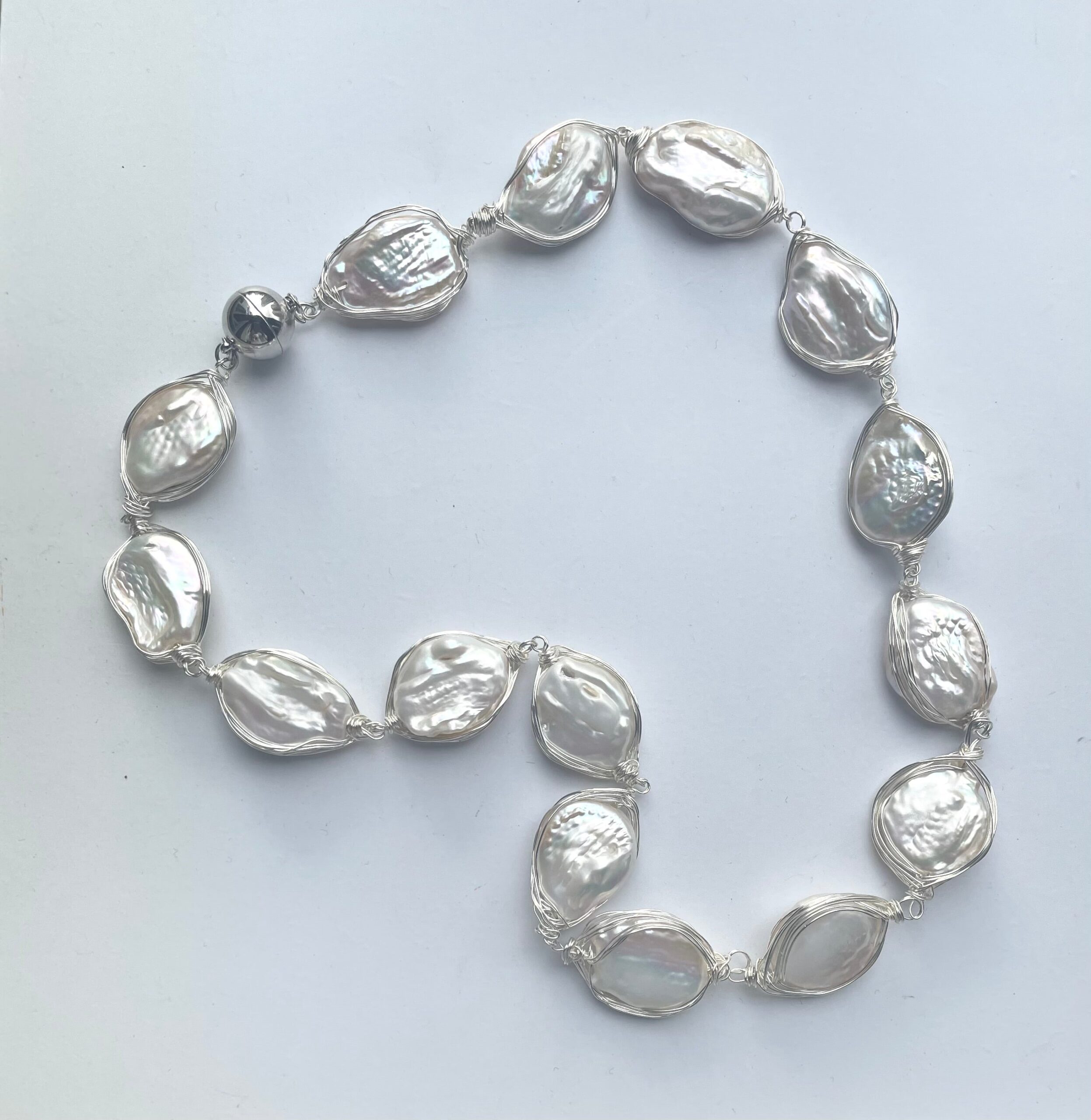 -Beautiful white pearl necklace                                                    -Handmade with silver wireÂ