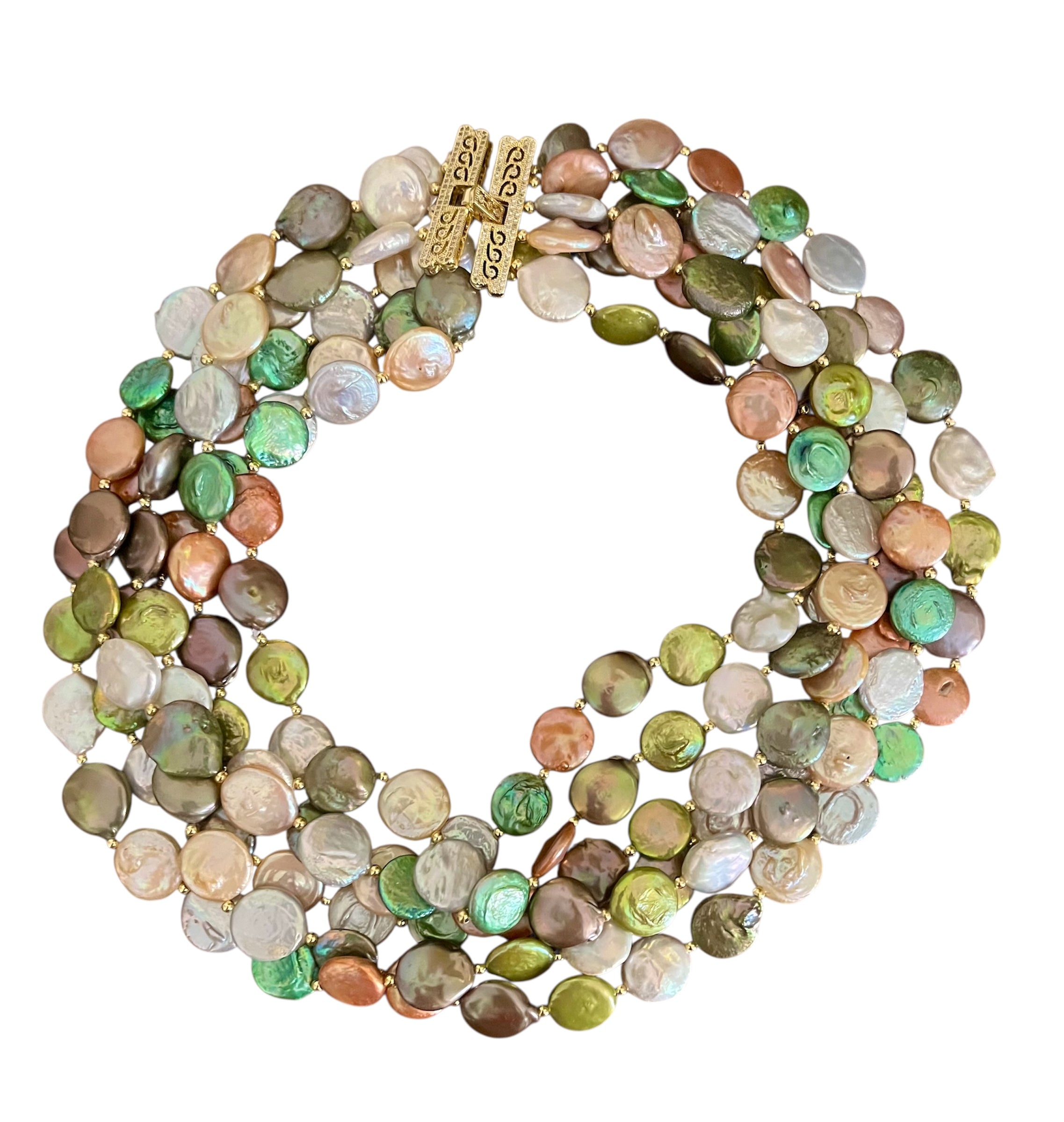 -Necklace is made with fine quality multi coloured fresh water coin pearls