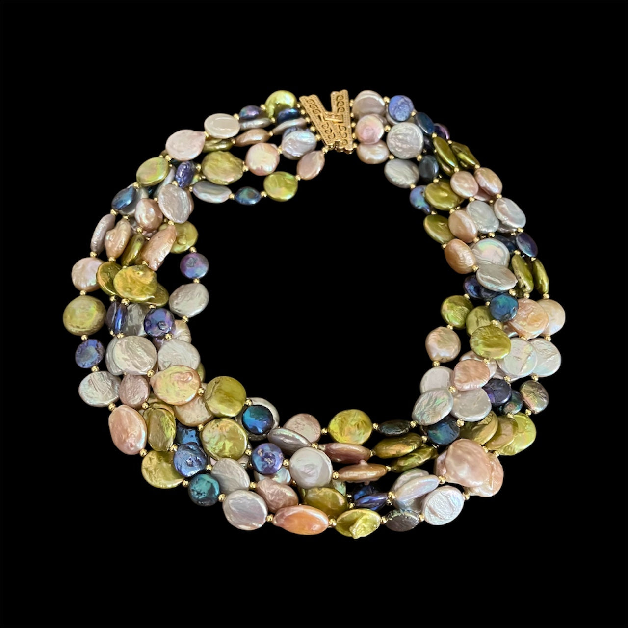 -Necklace is made with fine quality multi coloured fresh water coin pearls