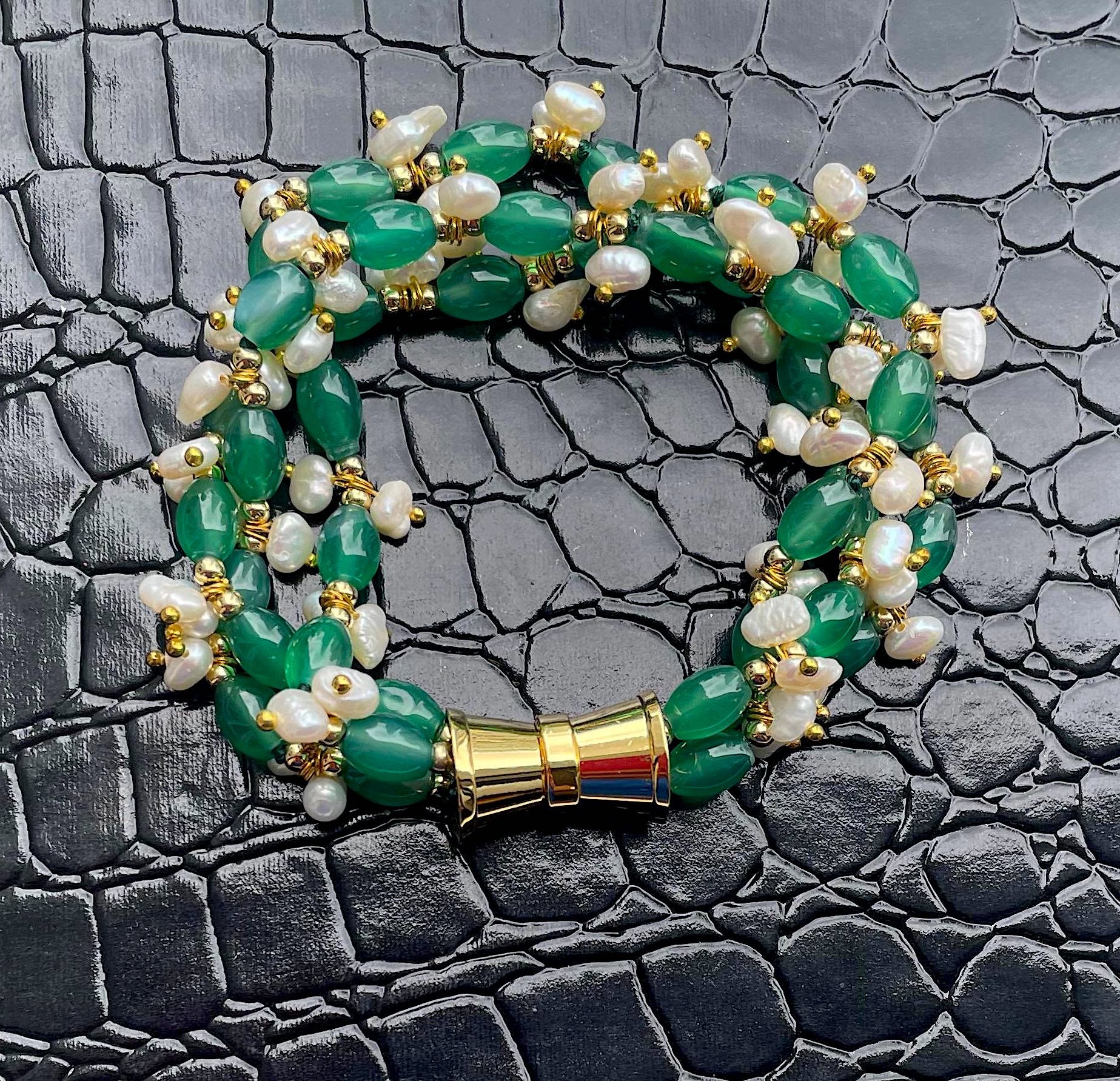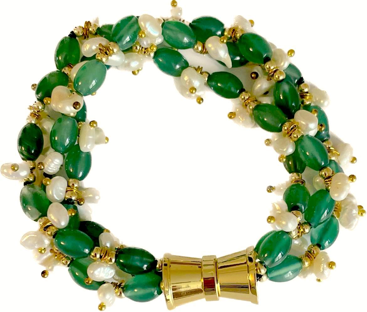 -Classic pearl and jade bracelet with grape cluster of white fresh water pearls
