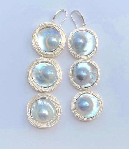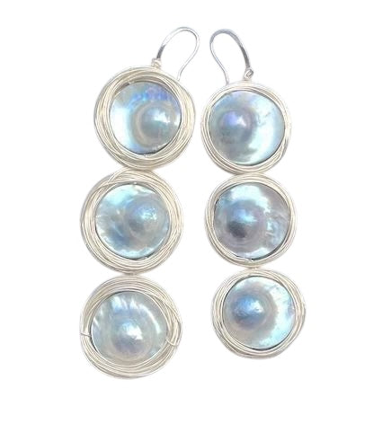 -Beautiful grey/blue mabe pearl earrings with silver wire