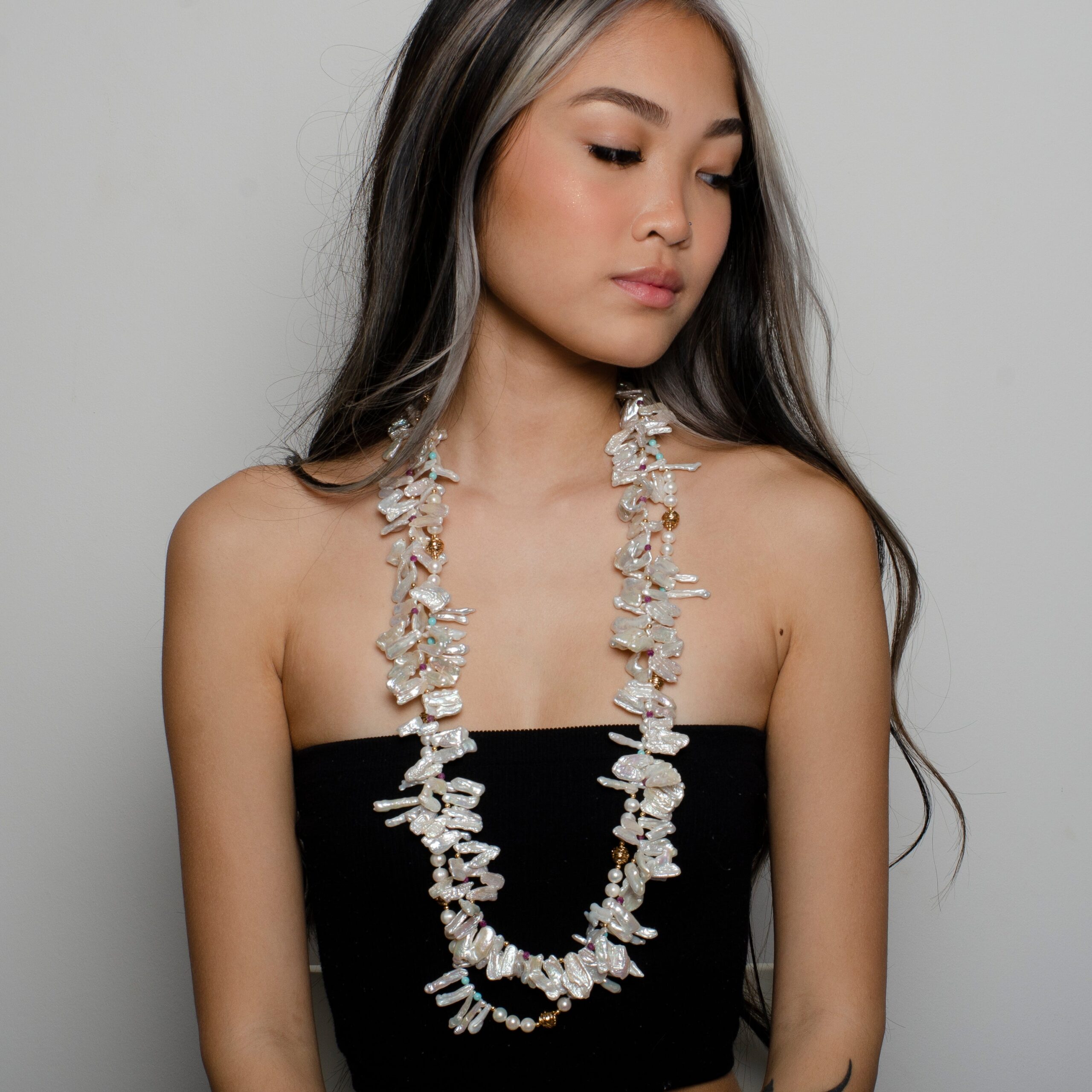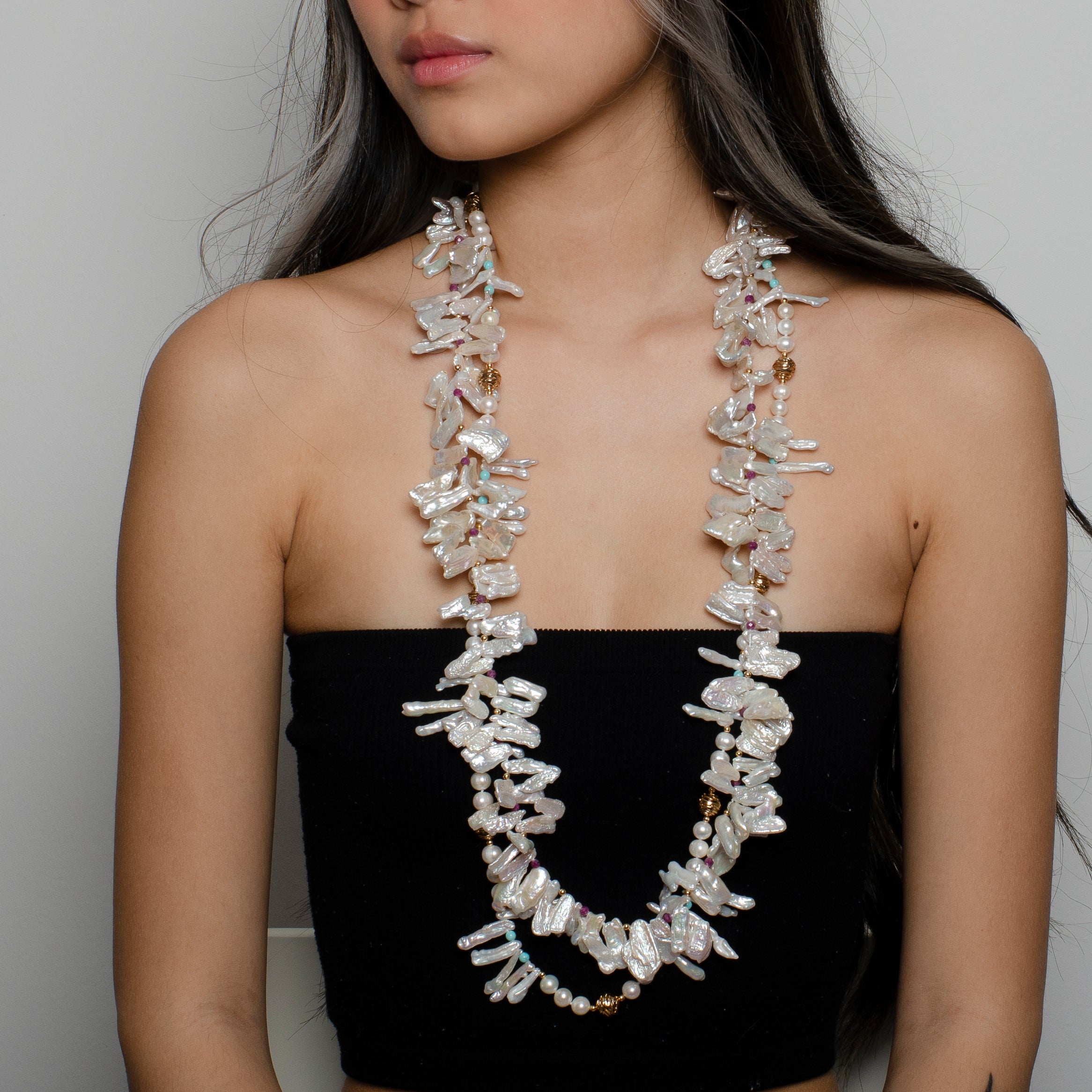 TOOTH PEARL AND TOURMALINE NECKLACE