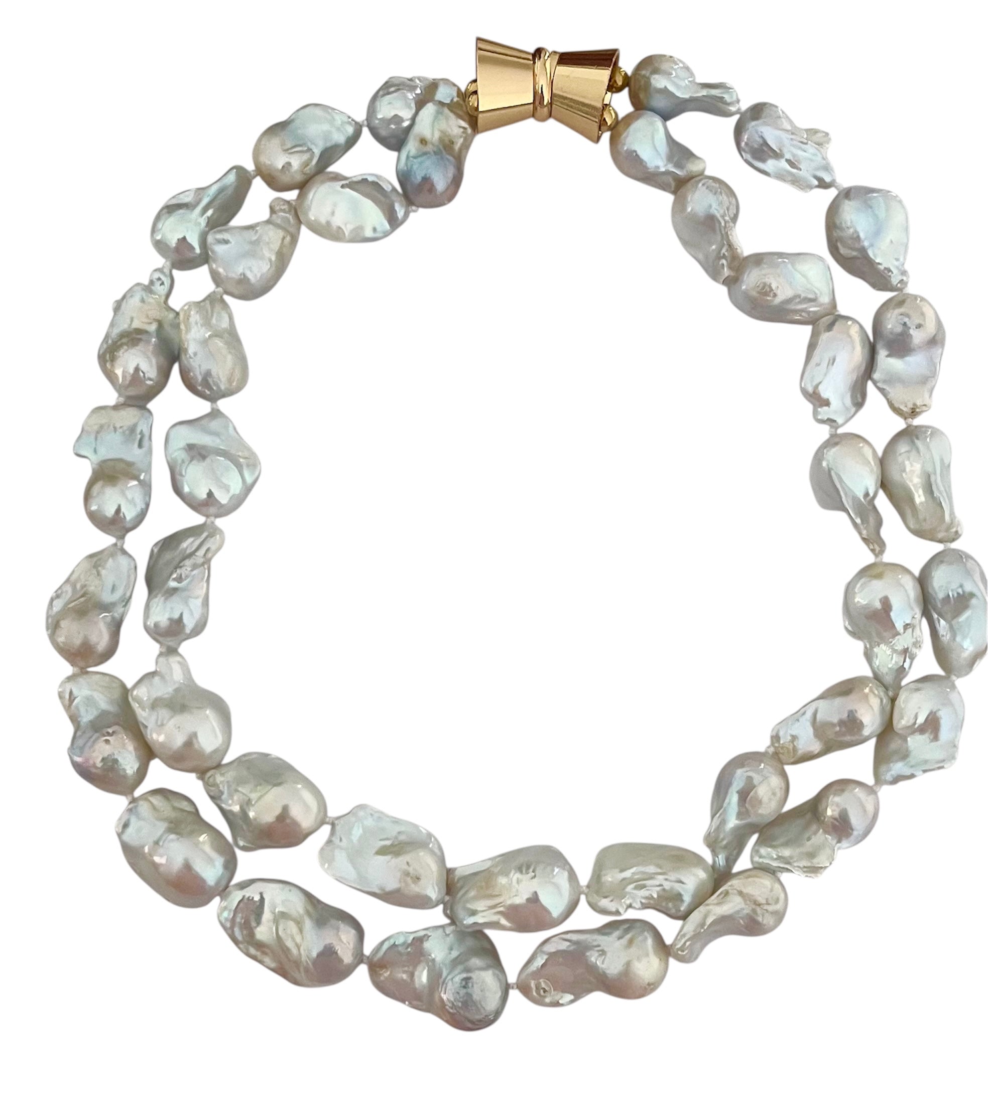 -Beautiful and lustrous two tier white baroque pearl necklace