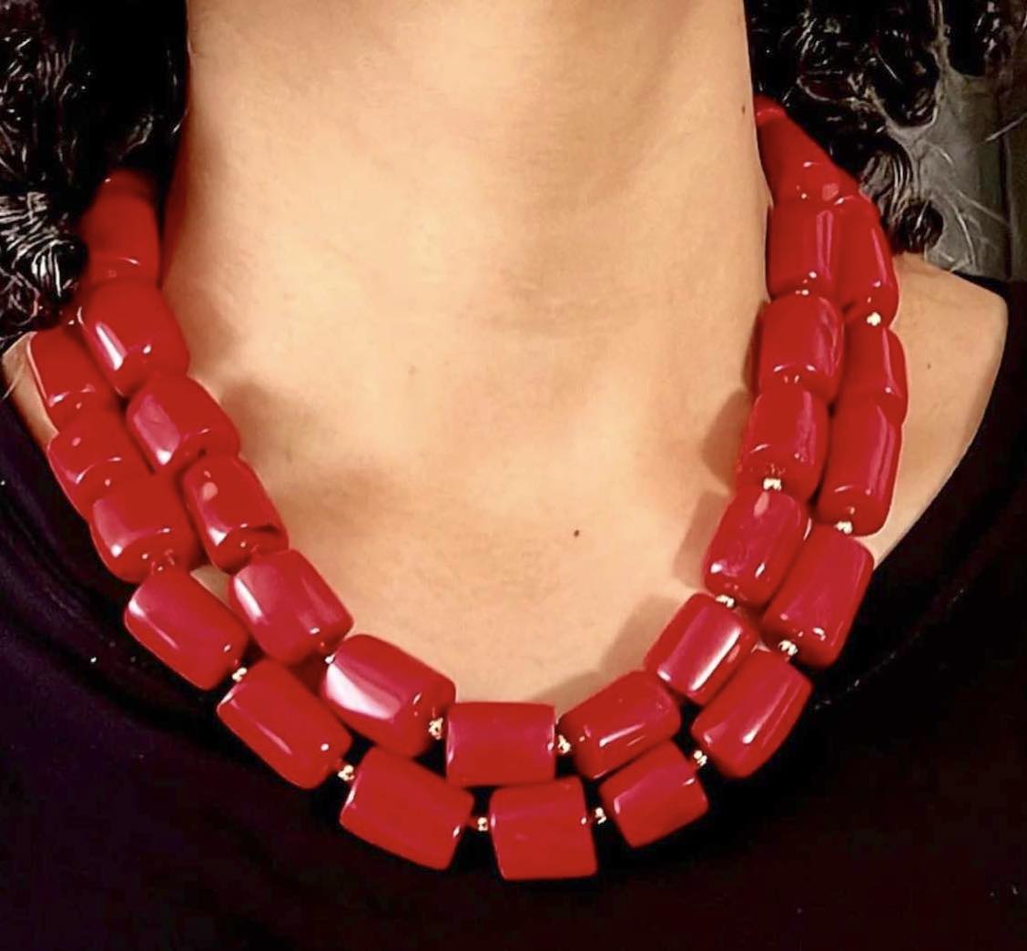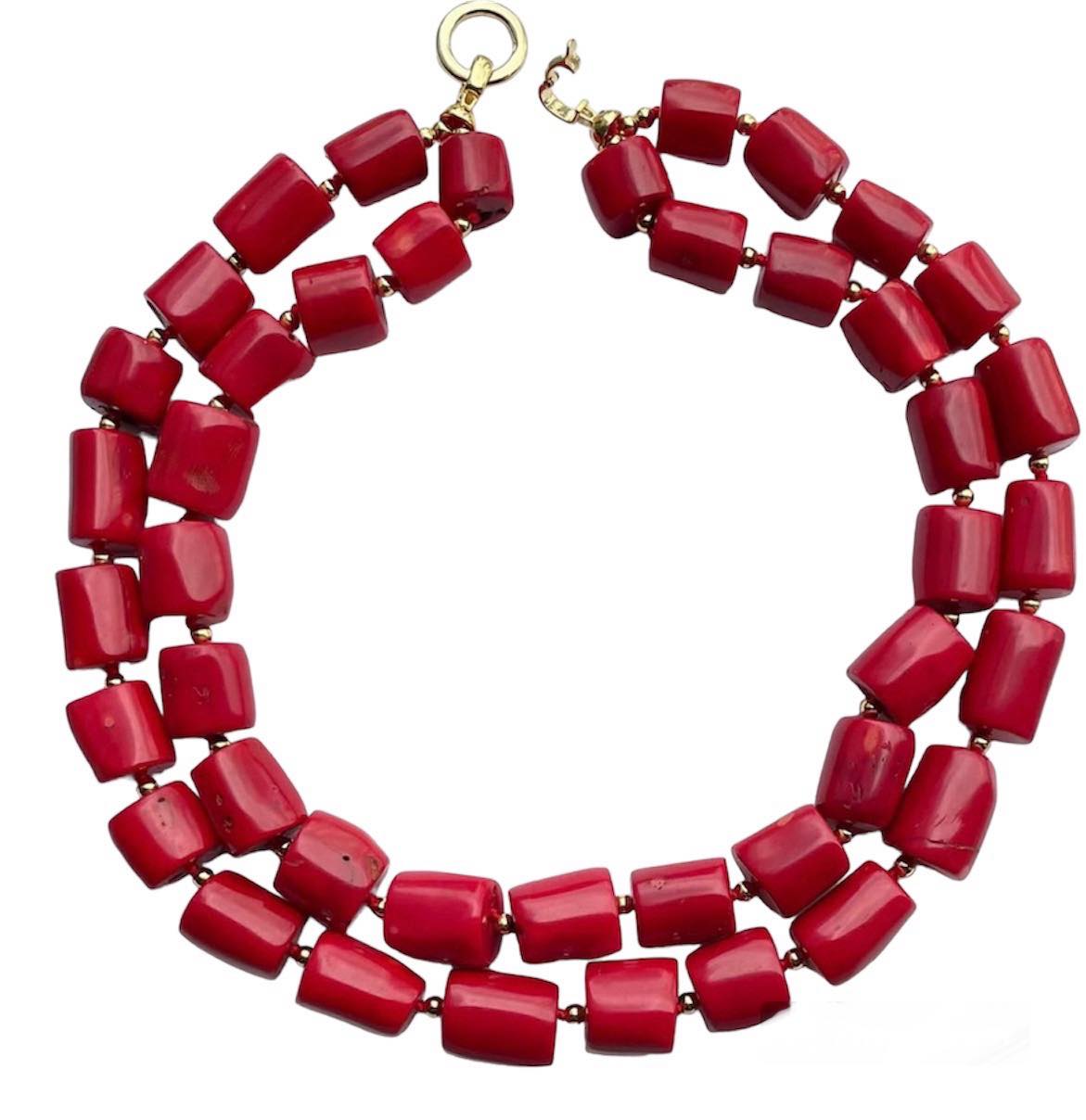 -Necklace is made with chunky natural coral that sits beautifully on the neck