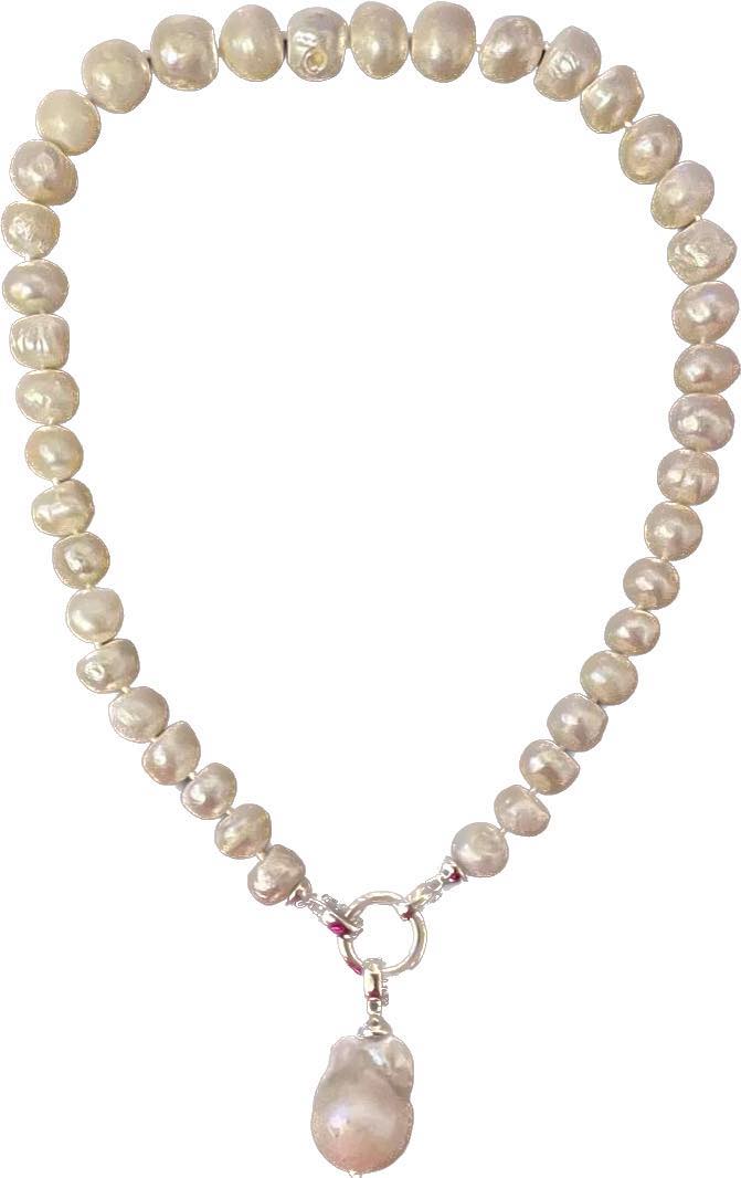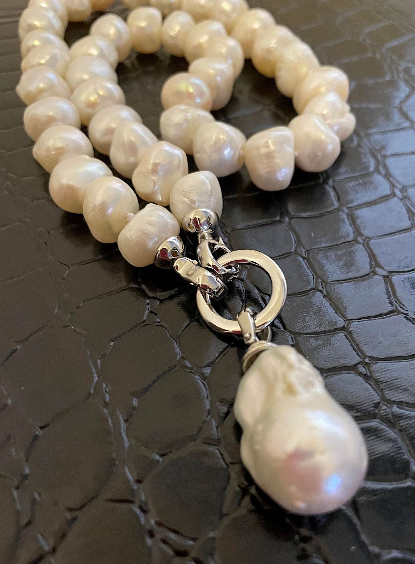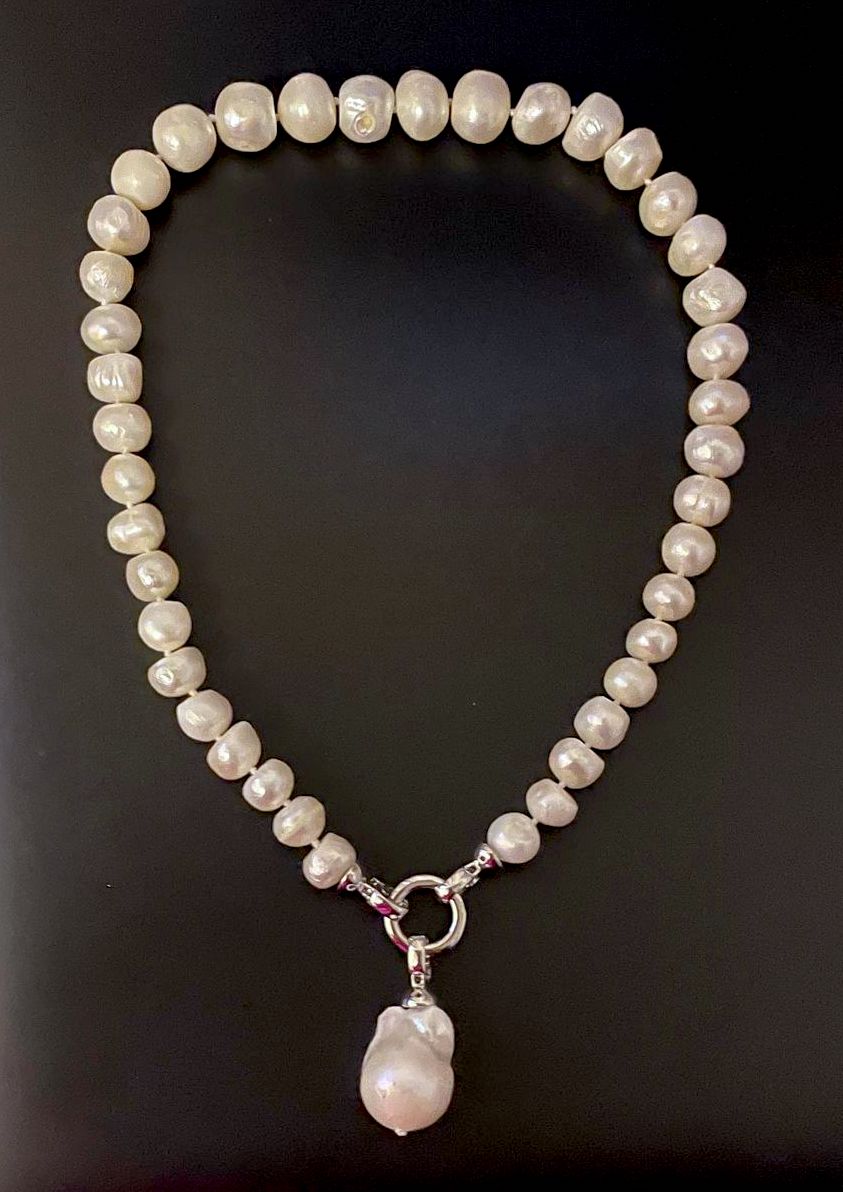 -Classic white fresh water pearl necklace with a baroque pearl drop