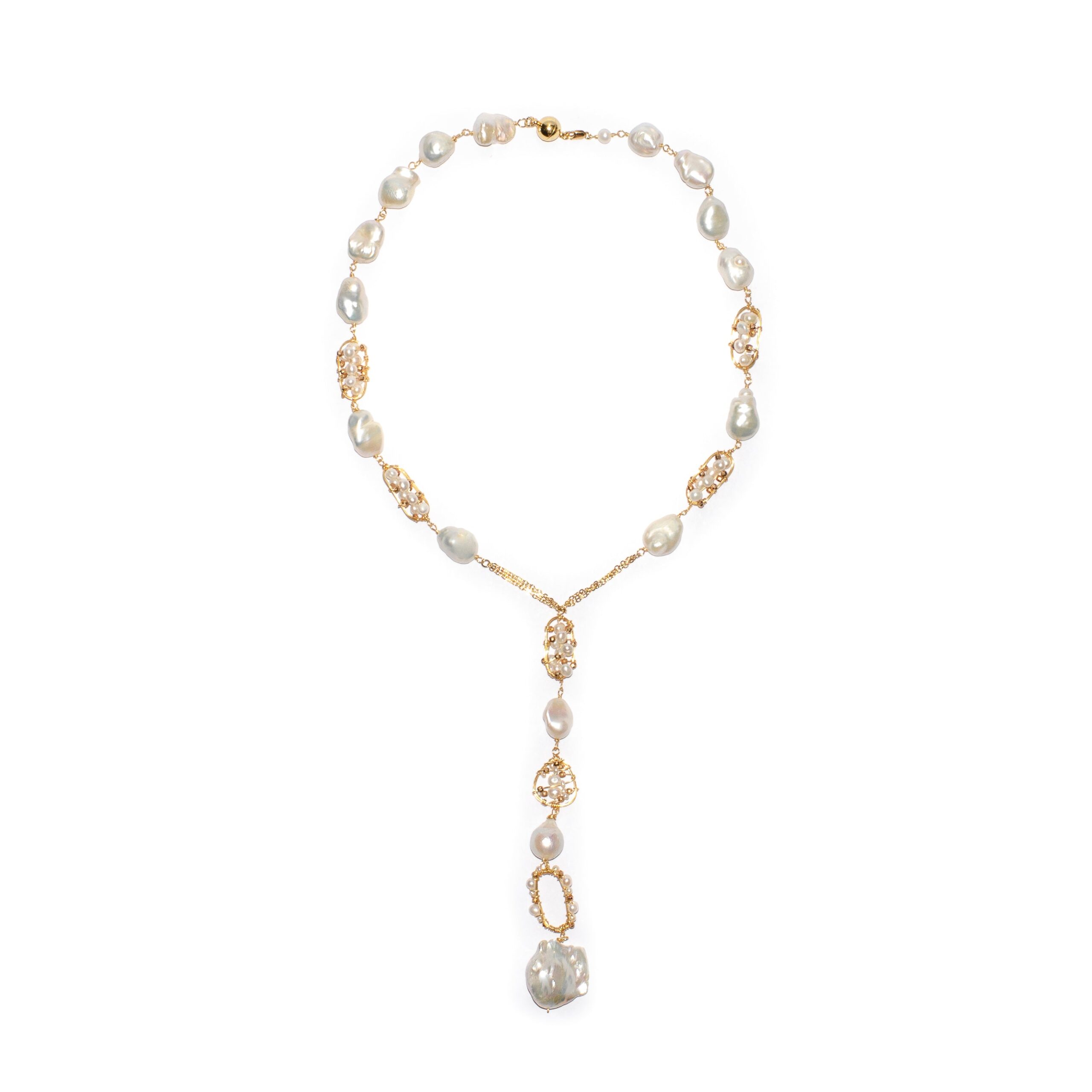 -Necklace is made with fresh water baroque and keshi pearls
