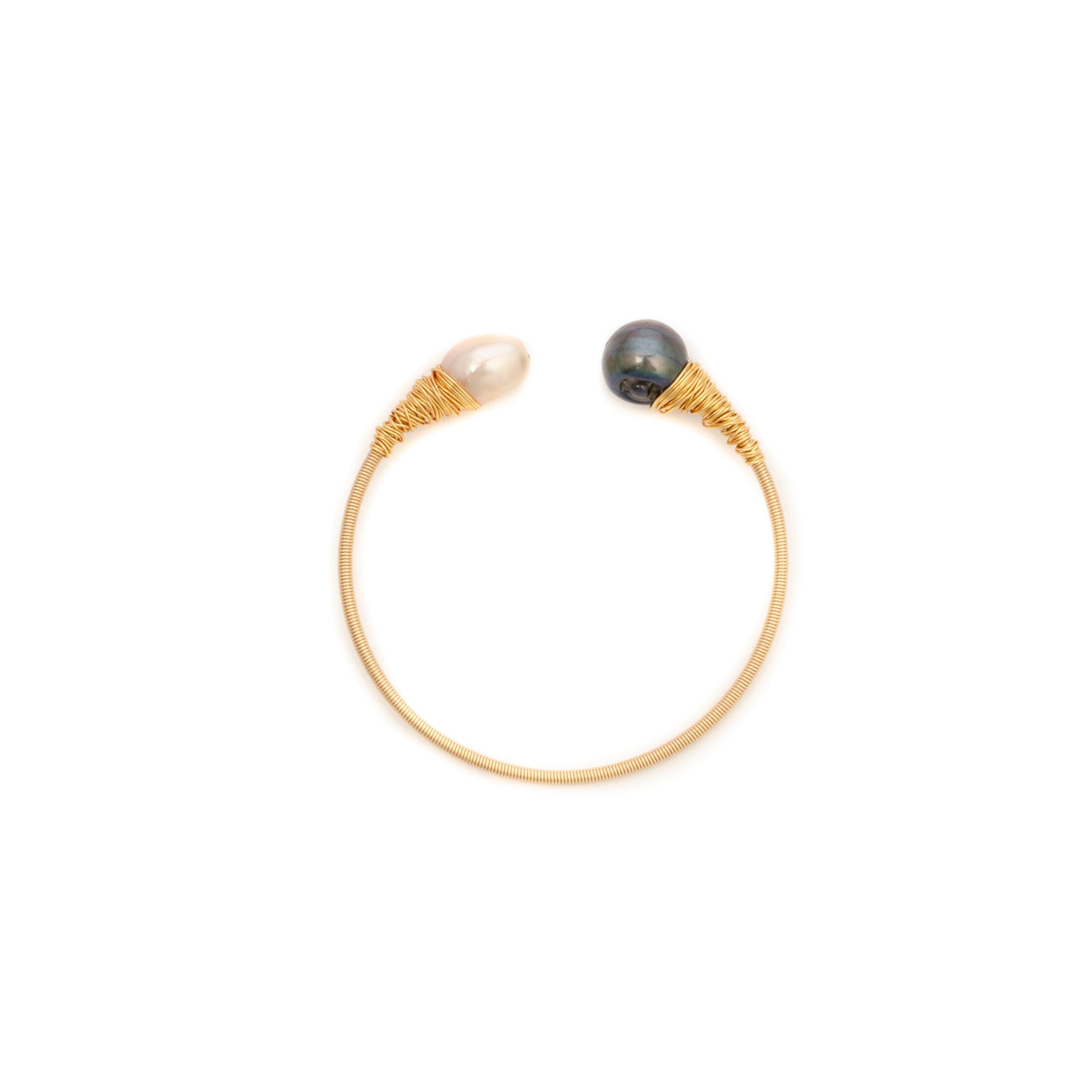 -Lustrous black and pink fresh water pearls bangle