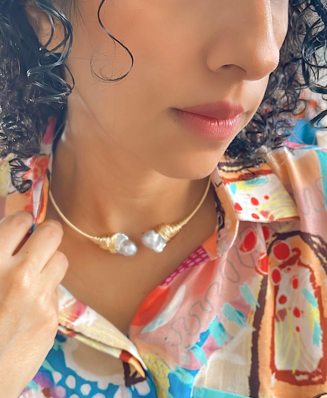 -Lustrous grey baroque pearl choker necklace                                           -Handmade with 18K gold plated wireÂ